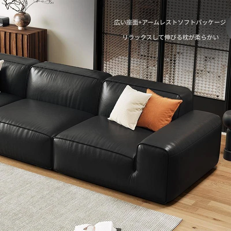 極簡デザインの高級本革クラウドソファ|イタリアンスタイルの小型リビングに最適!3人掛けのモダンでシンプルな本革ソファで、心地よいひとときを提供します。おしゃれな空間を演出し、あなたの生活を豊かにします!