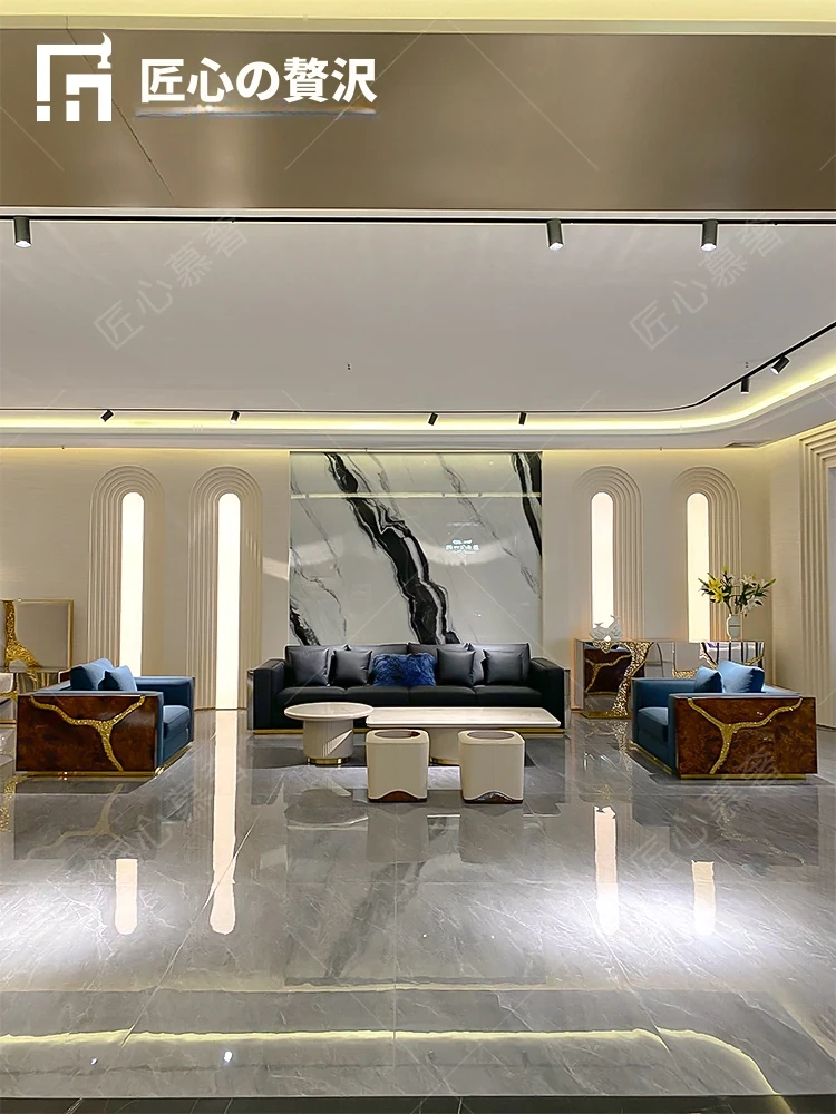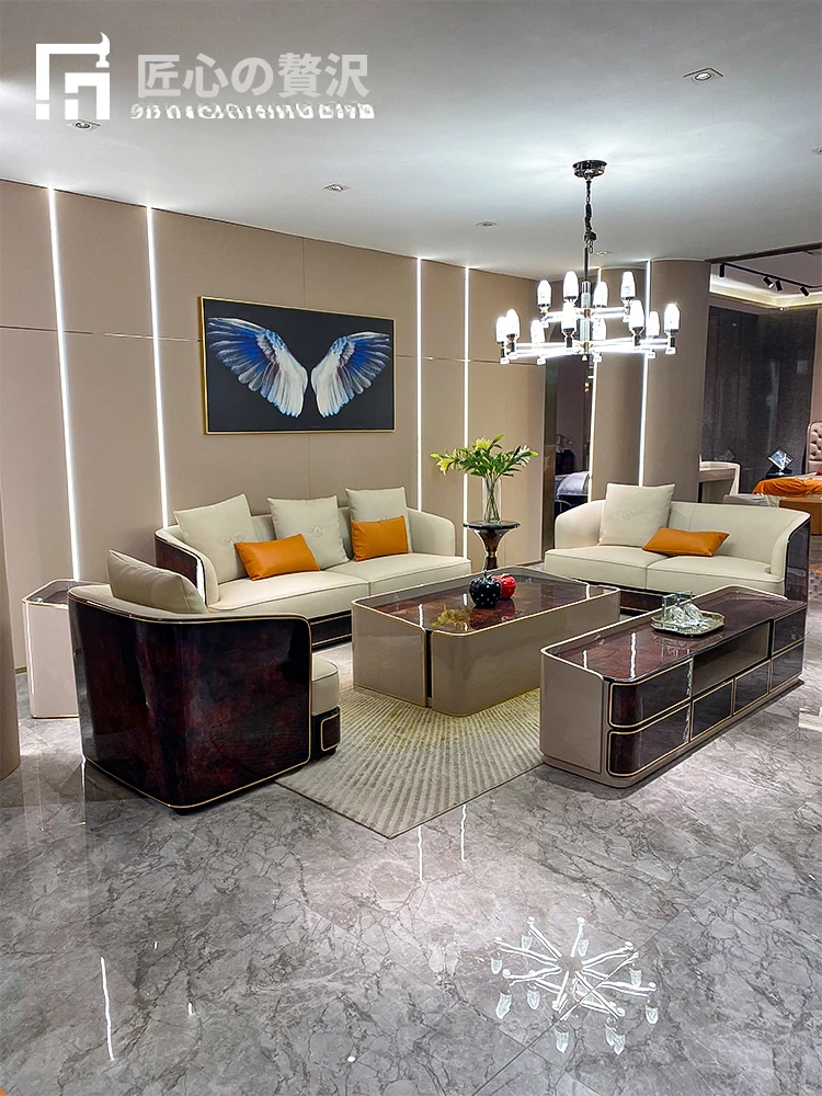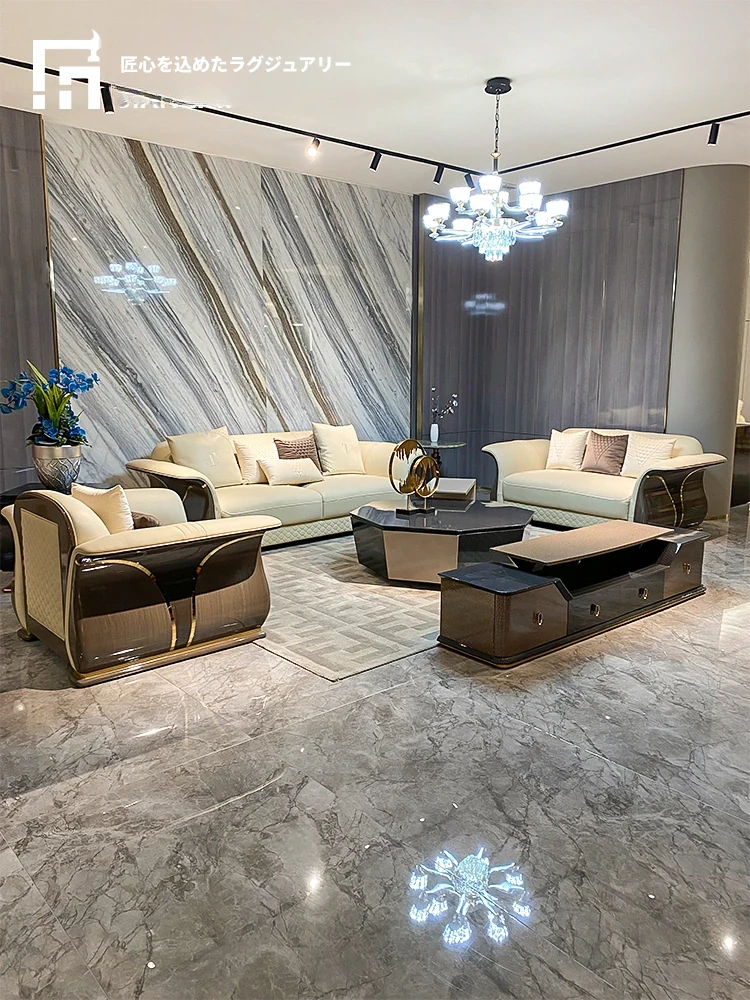 イタリアンラグジュアリー ベントレー後現代真皮ソファ AX シンプルで高級感あふれる香港スタイルの豪邸・別荘用1234コンビネーションセット