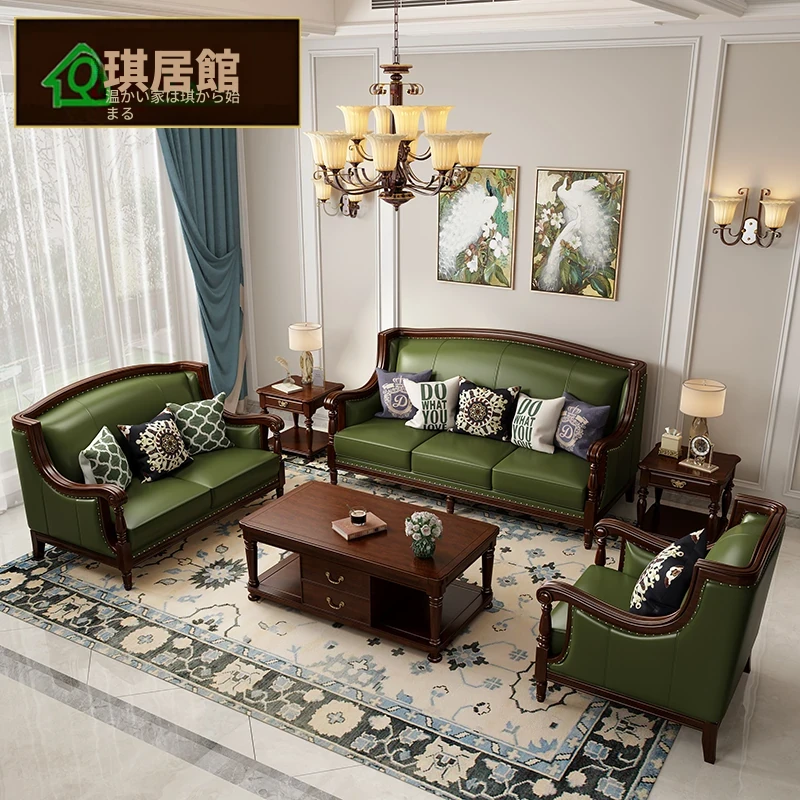アメリカンカントリーソファ 全木製 シンプルでエレガントな本革使用 リビングルーム向け コンボタイプ 高級ヴィラや小型住宅に最適な真皮家具