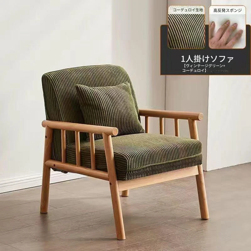 全実木製ソファA2311222 - モダンでシンプルなデザインのリビング用、自然な木の質感が魅力の小型家具、023タイプに最適!おしゃれなインテリアを演出します。