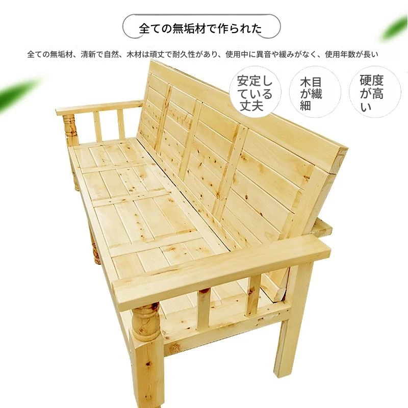 8V全木製デザインの2人掛けソファベッド、小型住宅向けのラクなソファチェアセット。折りたたみ可能なパイン材使用で、スペースを有効活用!020182