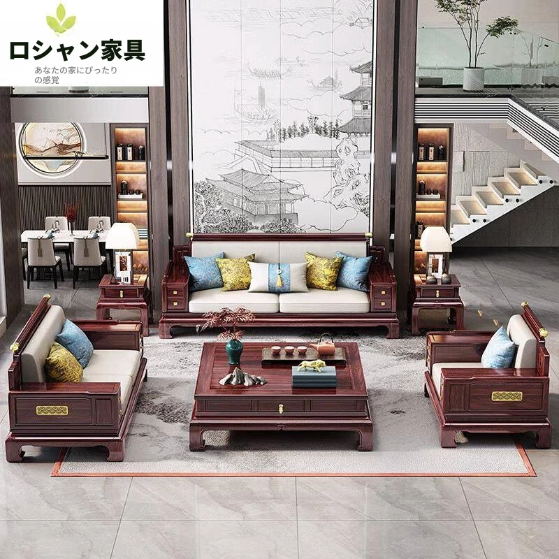 中式無垢材ソファセット|961のサイズ対応|多機能デザインでリビングやオフィスに最適|高品質工場直販の豪華な中華スタイルソファ