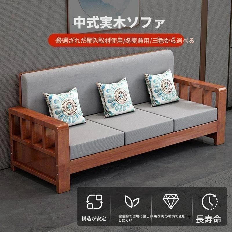 現代的中式木製ソファセット - スタイリッシュでシンプルなデザイン、狭いスペースにもぴったりな3人掛け!快適なリビング空間を実現します。