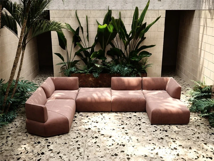 イタリアンラグジュアリー現代別荘リビングU字型コンビネーションピンクテクスチャー布ソファ ホテルラウンジ用ユニークシェイプカウンター席で、洗練された空間を演出しませんか?