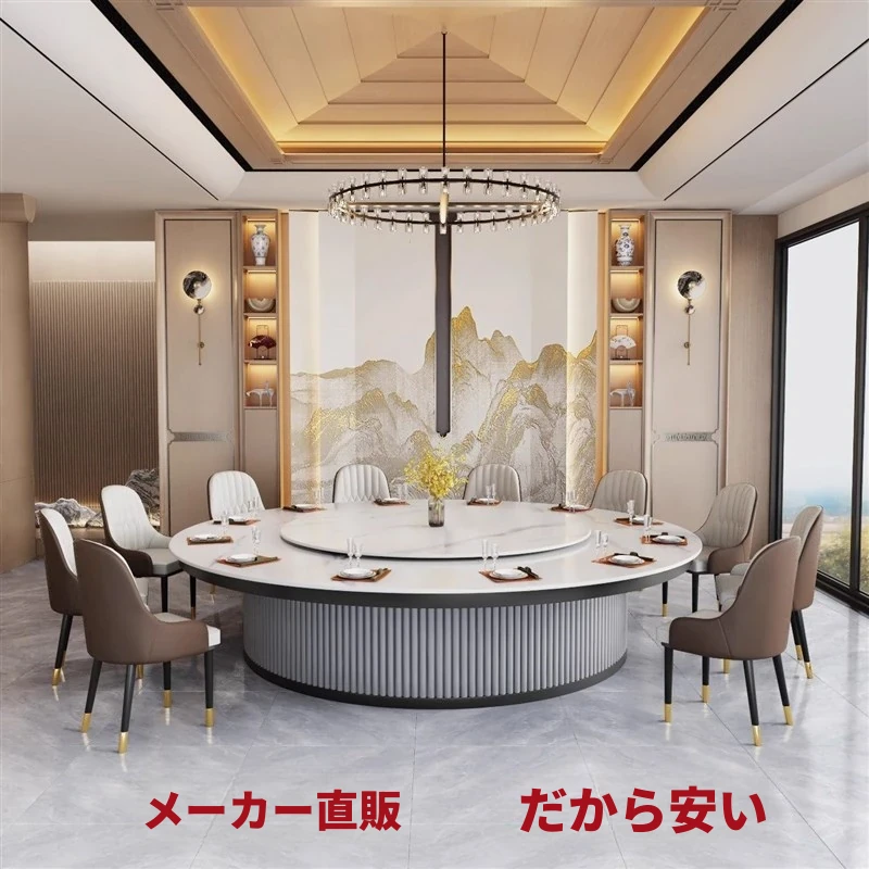 豪華なホテル用電動岩板円卓 – 最大15人・20人対応、全自動回転式火鍋テーブル!軽やかなデザインで、特別なひとときを演出します。大人数のパーティーや家族の集まりに最適です!