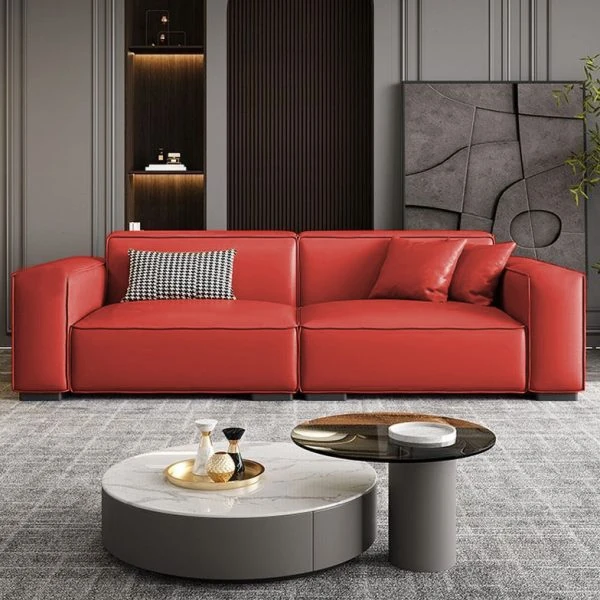 おしゃれなリビングにぴったり!イタリアンスタイルの軽やかな豪華感を持つアパート用ソファ。コンパクトなデザインで、モダンな空間にフィットする布製&レザーの豆腐ブロックソファ。