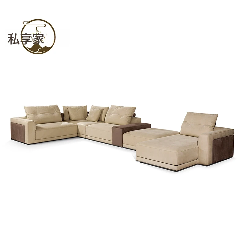 イタリアンミニマリズムの高級軽奢ソファ|本革使用|どんなサイズのリビングにもぴったり!ヴィラスタイルやモデルルームにも最適なデザイン|贅沢な布地ソファで、癒しの空間を演出します。