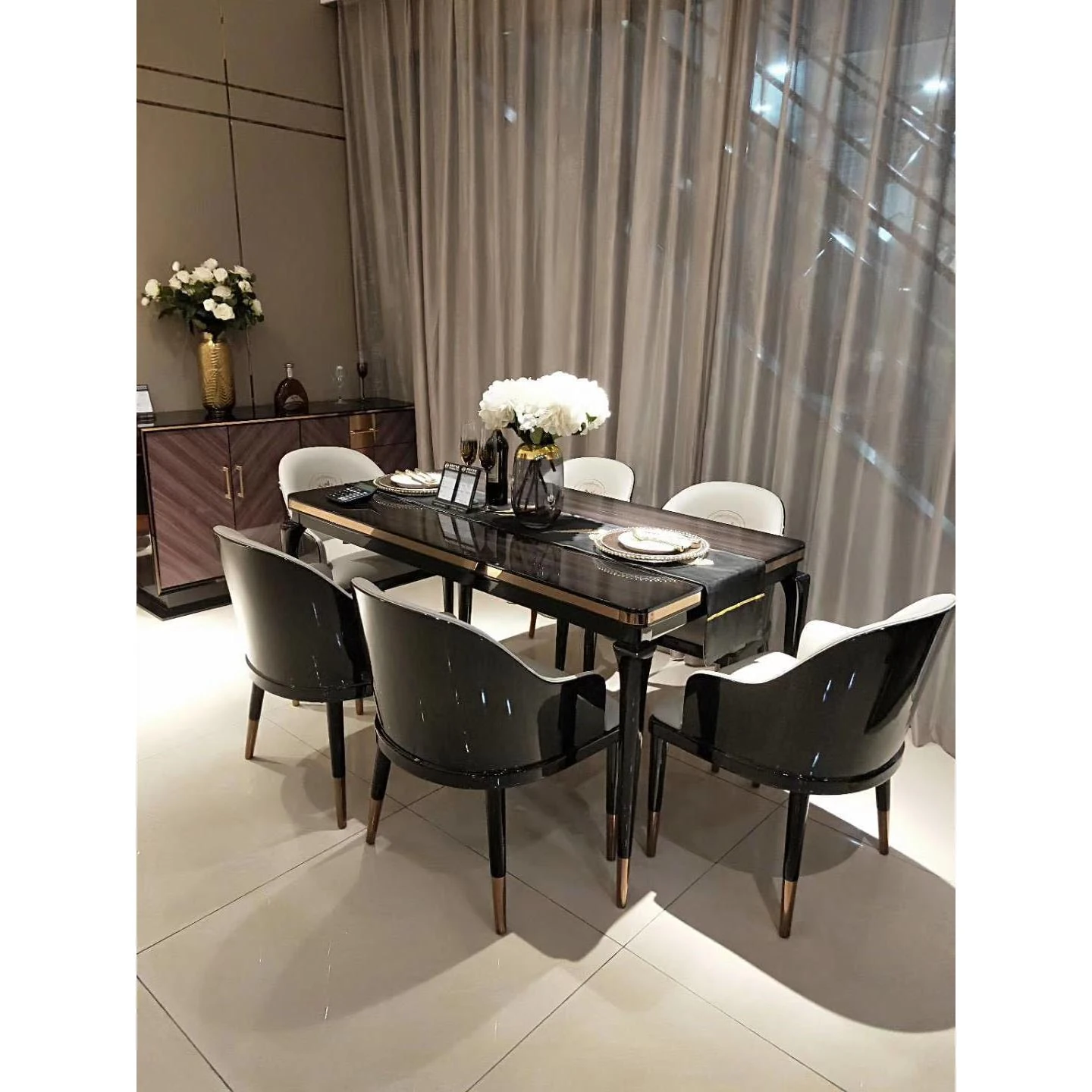 イタリアンデザインのラグジュアリーなヴィラ向け、テクノロジー革素材とトレンドのコントラストカラーを組み合わせた4人掛けソファとコーヒーカラーのアームチェア。おしゃれで快適なリビング空間を演出します!