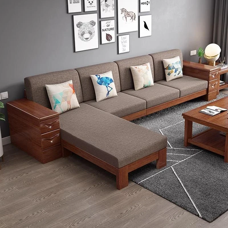 新中式デザインの実木ソファ!家庭用、リビングに最適なサイズ、冬夏兼用。ホテルや民宿にもぴったりな高箱収納付きソファで、スタイリッシュで機能的な空間を演出します!