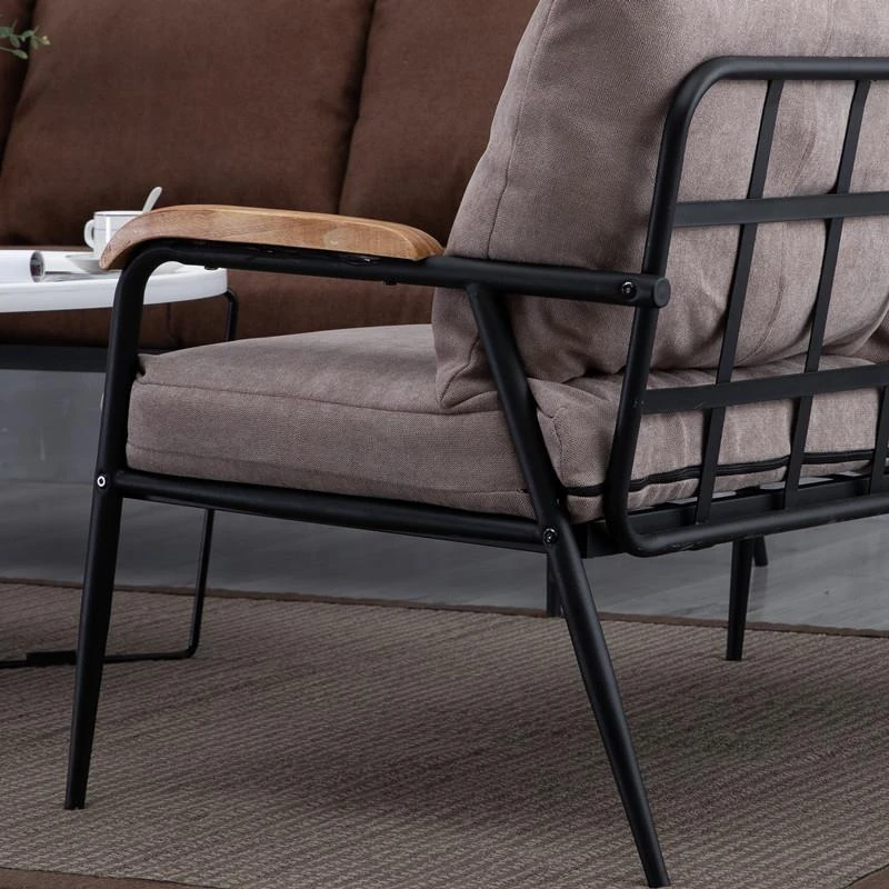辰日梵スタイル布製ソファ 小型リビングに最適 二人掛け 北帝琦のシンプルモダンデザイン 木製アームとアイアンフレームの組み合わせで、洗練された雰囲気を演出します!