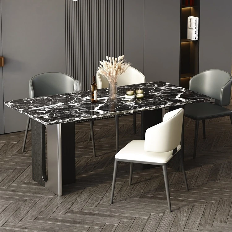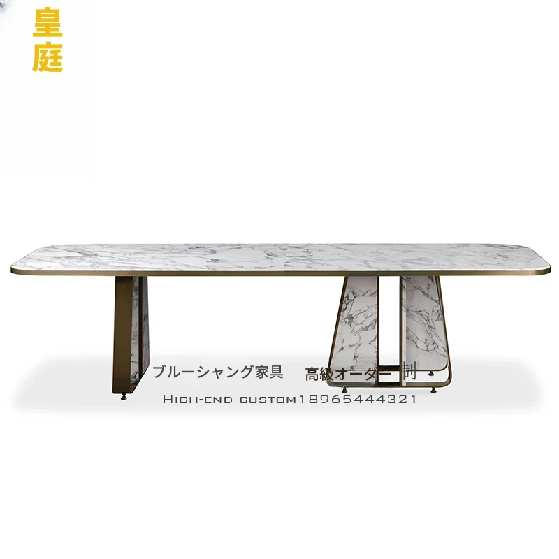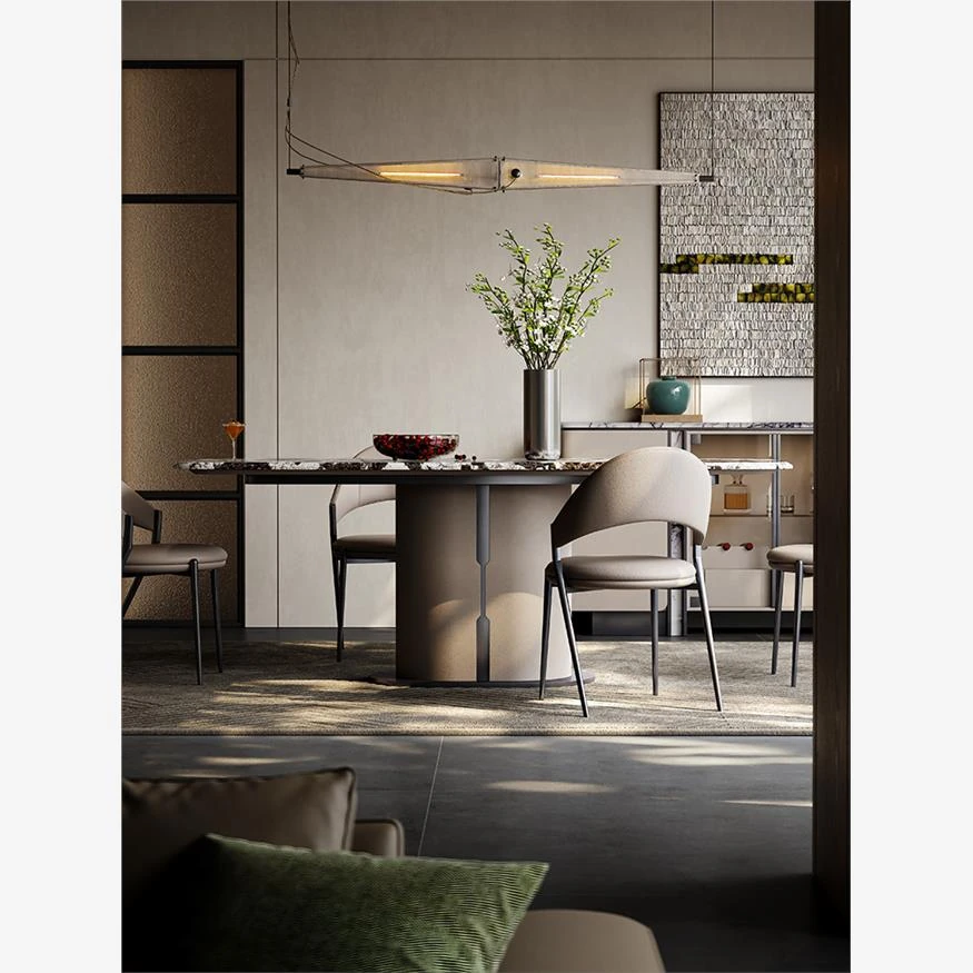 イタリアンラグジュアリー高級大理石長方形ダイニングテーブル8人用チェアセット|モダンな別荘スタイルで、上質な雰囲気を演出する家庭用家具。