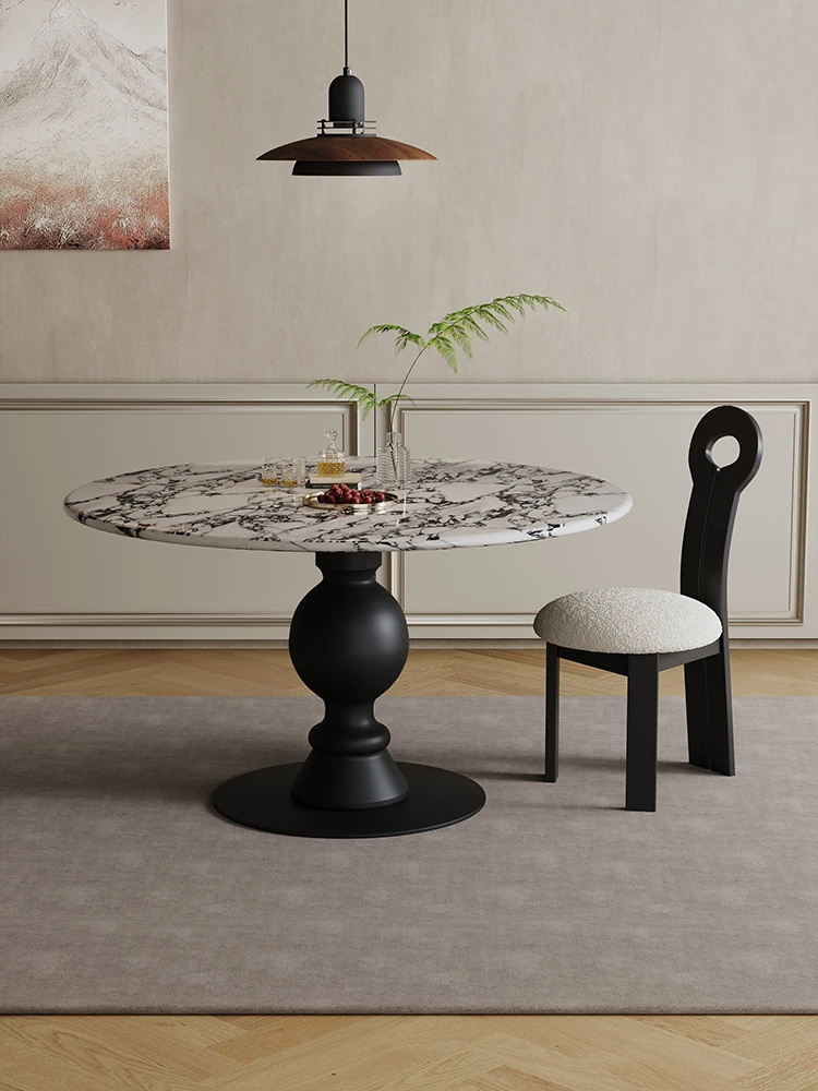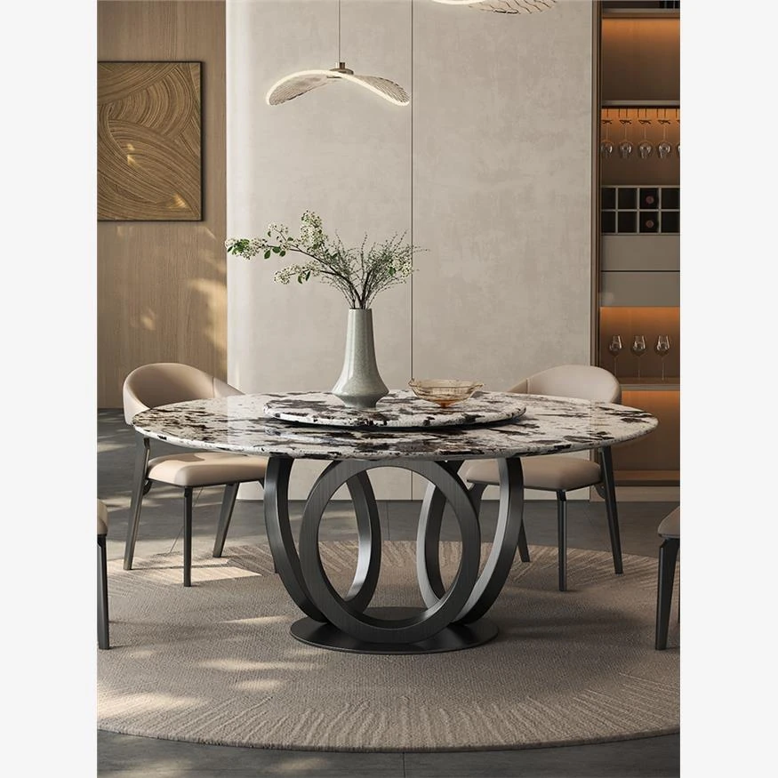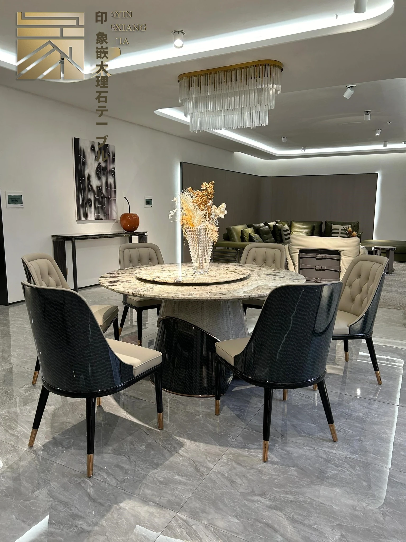 イタリアンポストモダン軽奢華サークルダイニングテーブルセット - ヴィラ高級レストラン向け、ベントレー大理石使用の贅沢な家具。あなたの食空間を格上げする一品です!