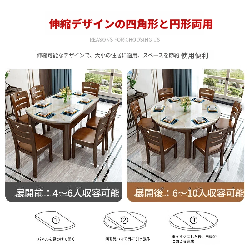 高級感溢れる大理石製の円形ダイニングテーブル、回転式で使いやすい!現代的な別荘スタイル、天然素材の雪山飛狐石を使用した贅沢な食卓で、特別なひとときを演出します。