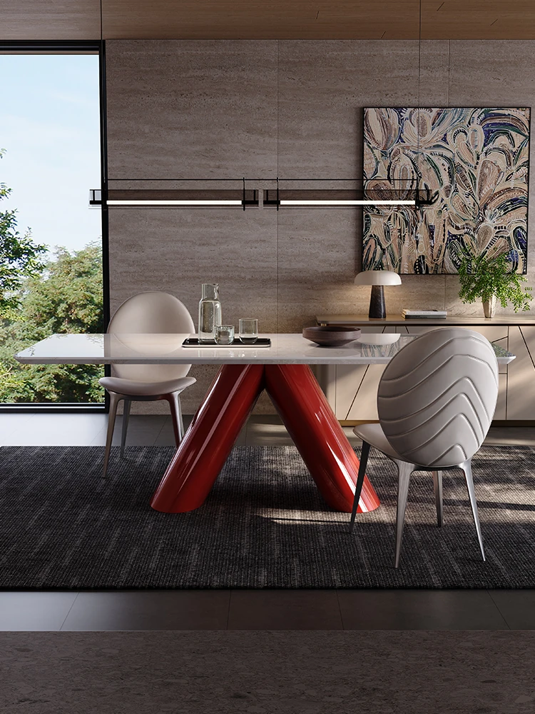 雪山飛狐 ラグジュアリー大理石ダイニングテーブルセット - 高級別荘向け、シンプルでエレガントなデザイン、快適な食事空間を演出。