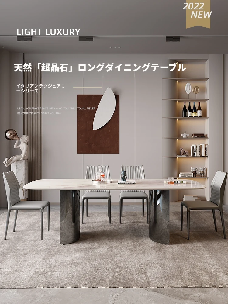イタリアンラグジュアリー 高級天然スーパーストーン ロングダイニングテーブル 現代的シンプルデザイン 小型住宅向け 岩板ダイニングテーブルと椅子のセット