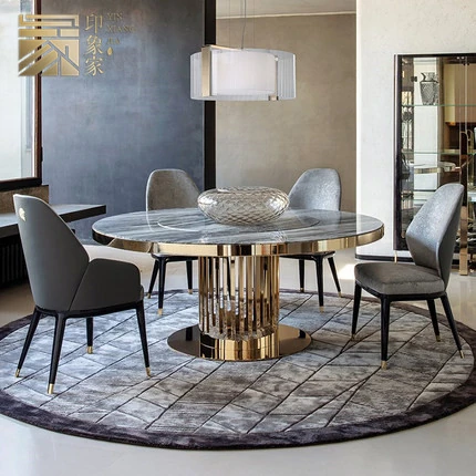 ポストモダンイタリアンラグジュアリー大理石ダイニングテーブル&チェアセット 高級レストラン向け ベントレー風ラグジュアリー 丸型ステンレス製ダイニングテーブルで特別な食事体験を演出!