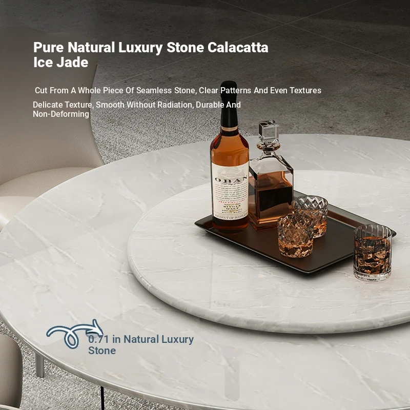 Luxury Marble Round Dining Table with Rotating Tray - Modern High-End Natural Stone Snow Mountain Design for Home and Villa