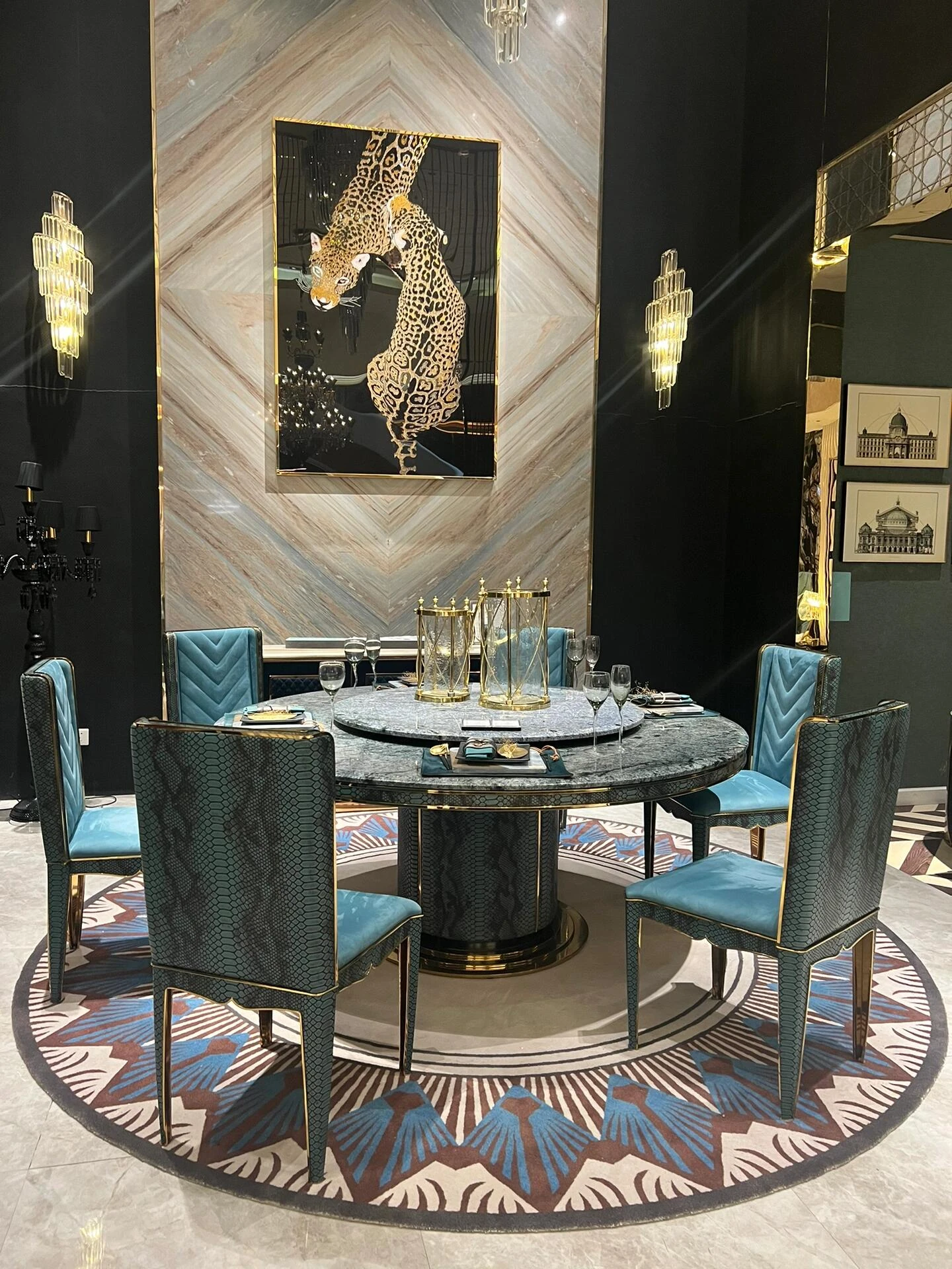 Luxury Round Dining Table with Natural Marble Top - Designer Collection for Elegant Villas and Homes, Complete Design Blueprint for Sophisticated Dining Experiences