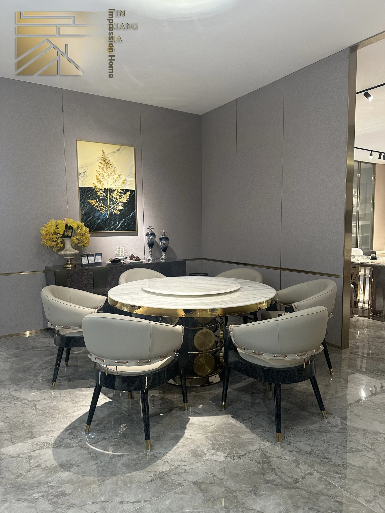 Modern Italian Marble Round Dining Table Set with Stainless Steel - Luxurious Feel for Villas and Spacious Homes, Perfect for Chic Dining Experiences