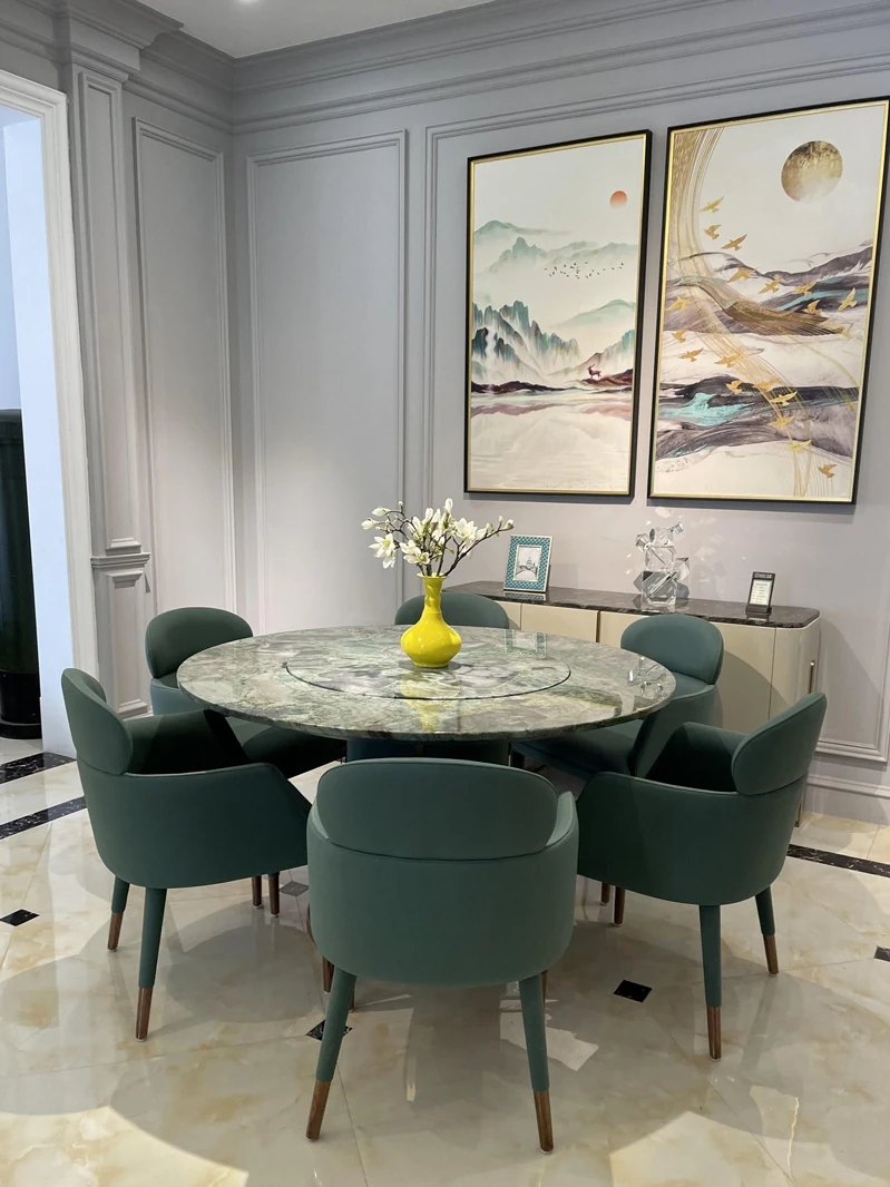 Italian Natural Marble Luxury Dining Table and Chair Set - Elegant Modern Round Table for High-End Villas, Perfect for Upscale Home Dining Experience