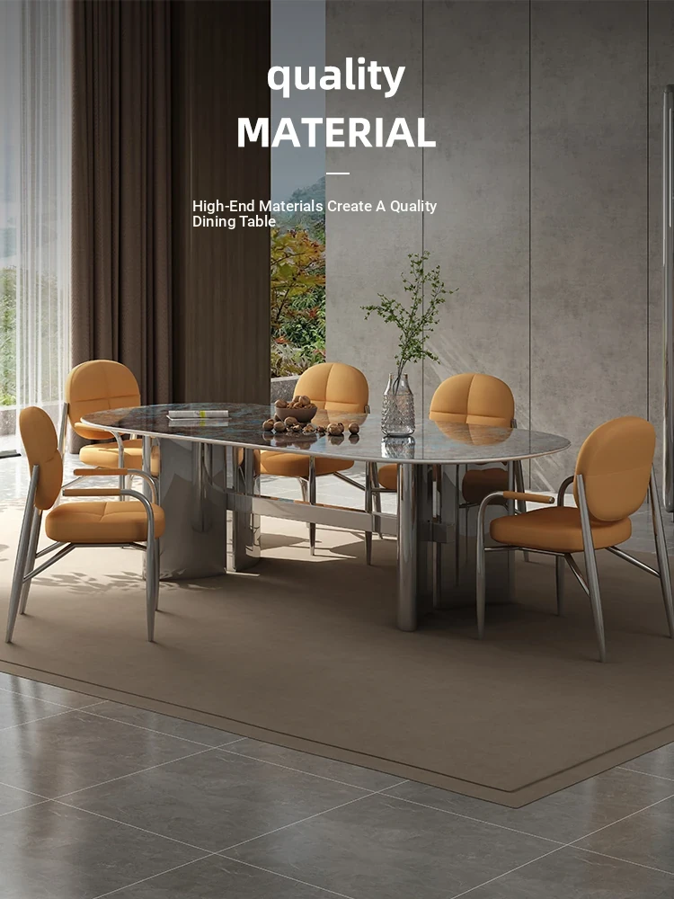 Italian Style Rectangular Dining Table Set with Natural Marble Top and Stainless Steel Gray Titanium Legs - Modern Luxury Quality for Your Home