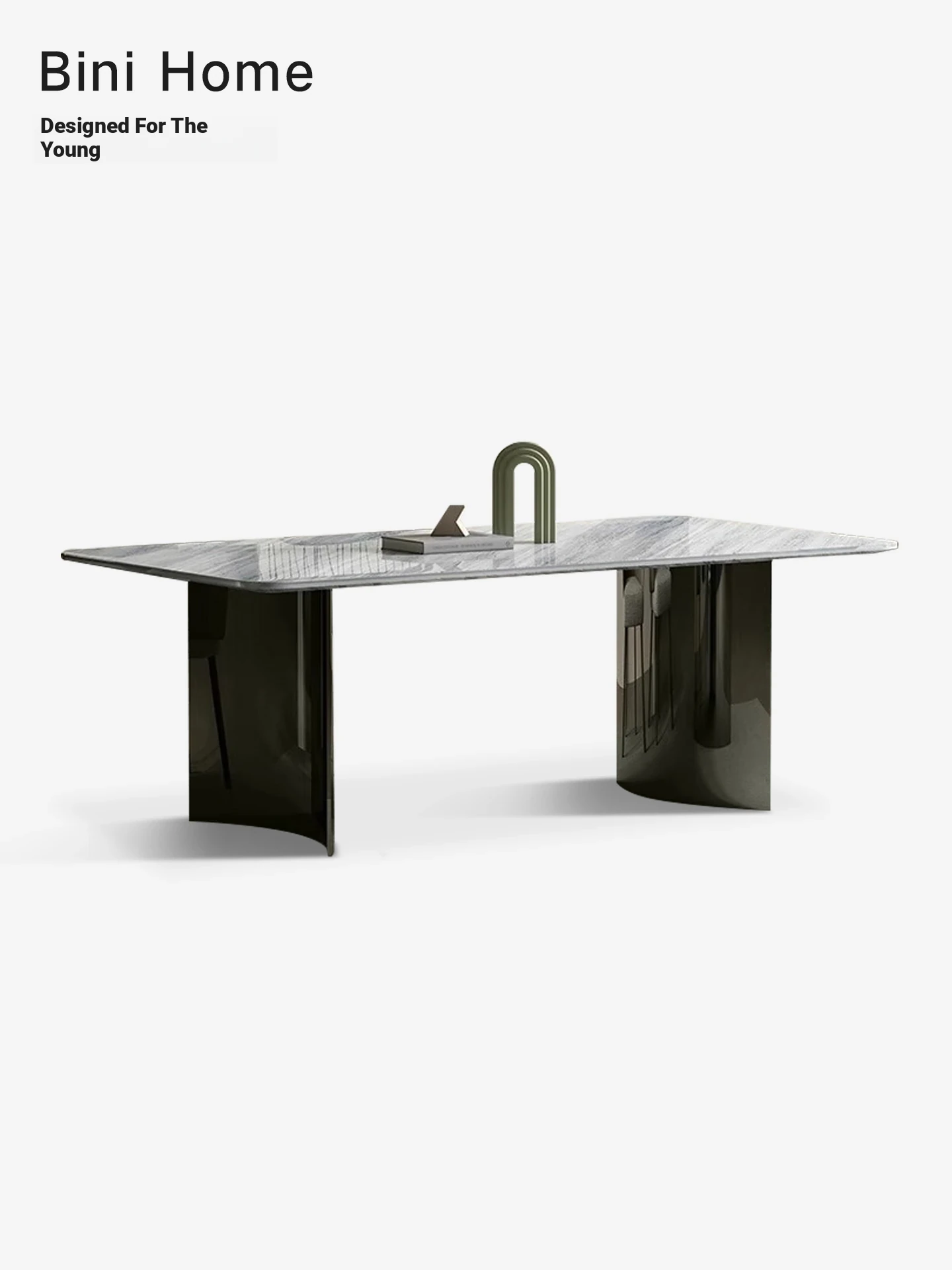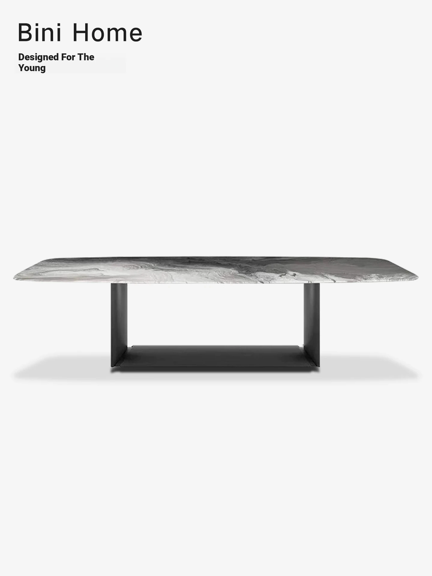 Nordic Style Marble Dining Table and Chair Set - Modern Minimalist Rectangular Design for 8 People, Perfect for Luxurious Living Rooms.