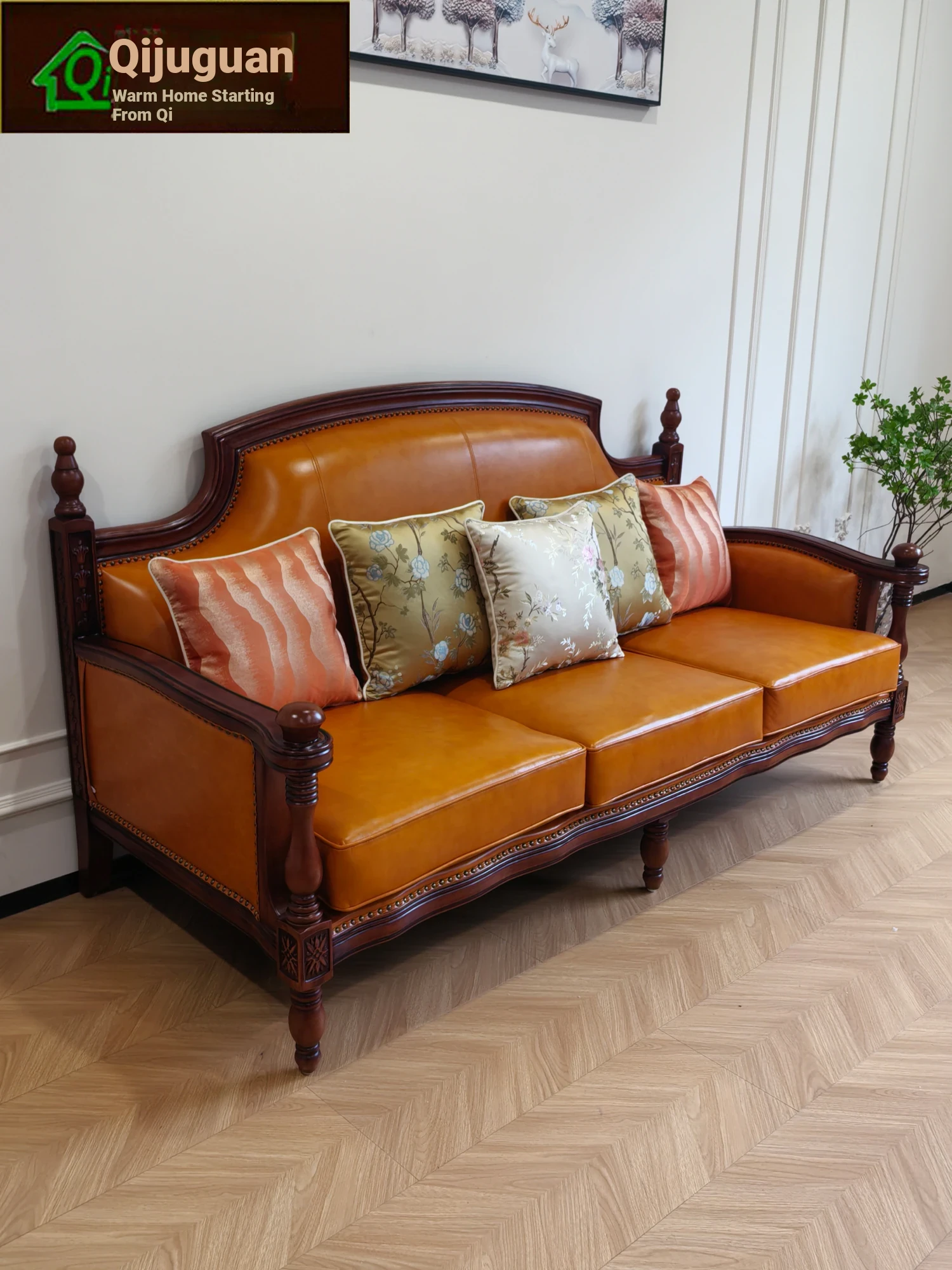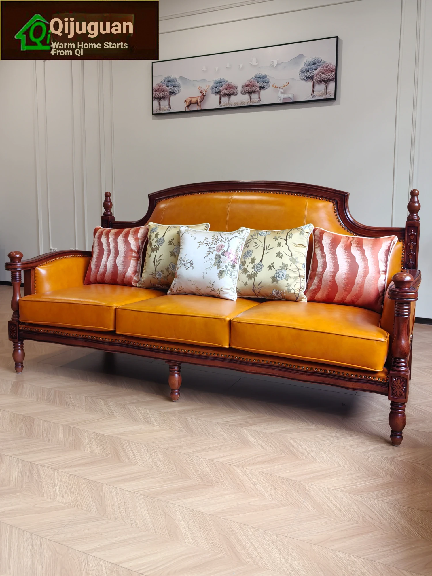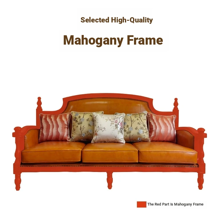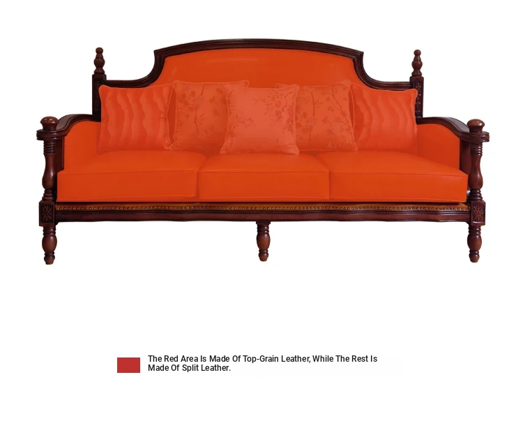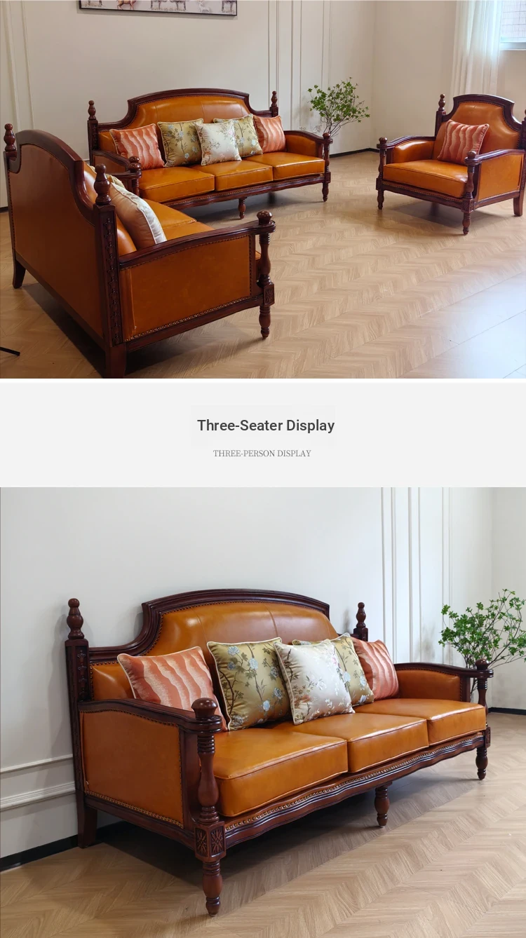 American Genuine Leather Sofa Set - Premium Top-Grain Cowhide, 123 Combination, Solid Wood Frame, Vibrant Orange Yellow - Perfect for Stylish Living Rooms!