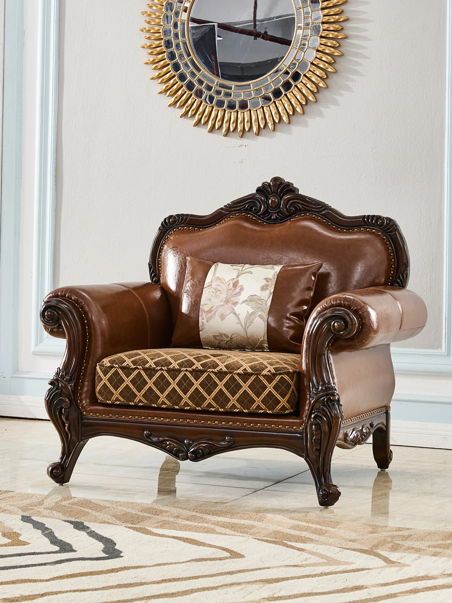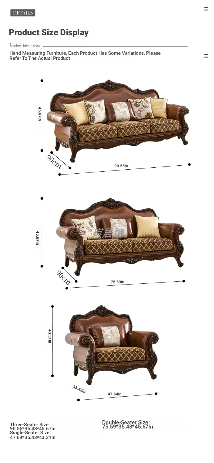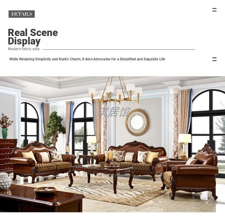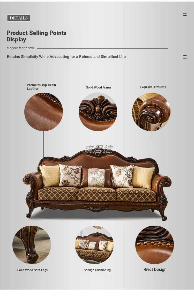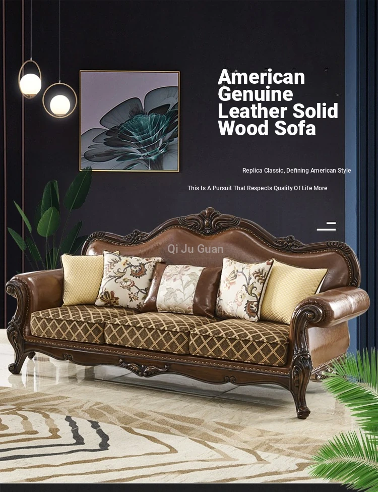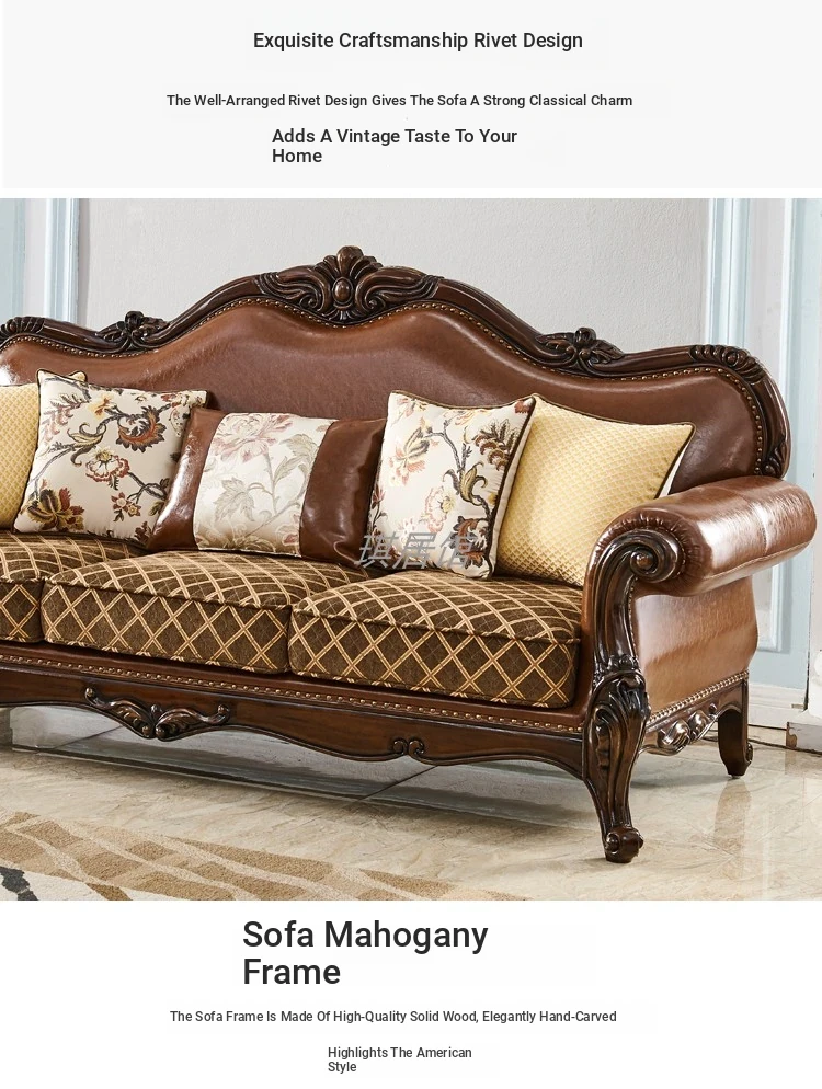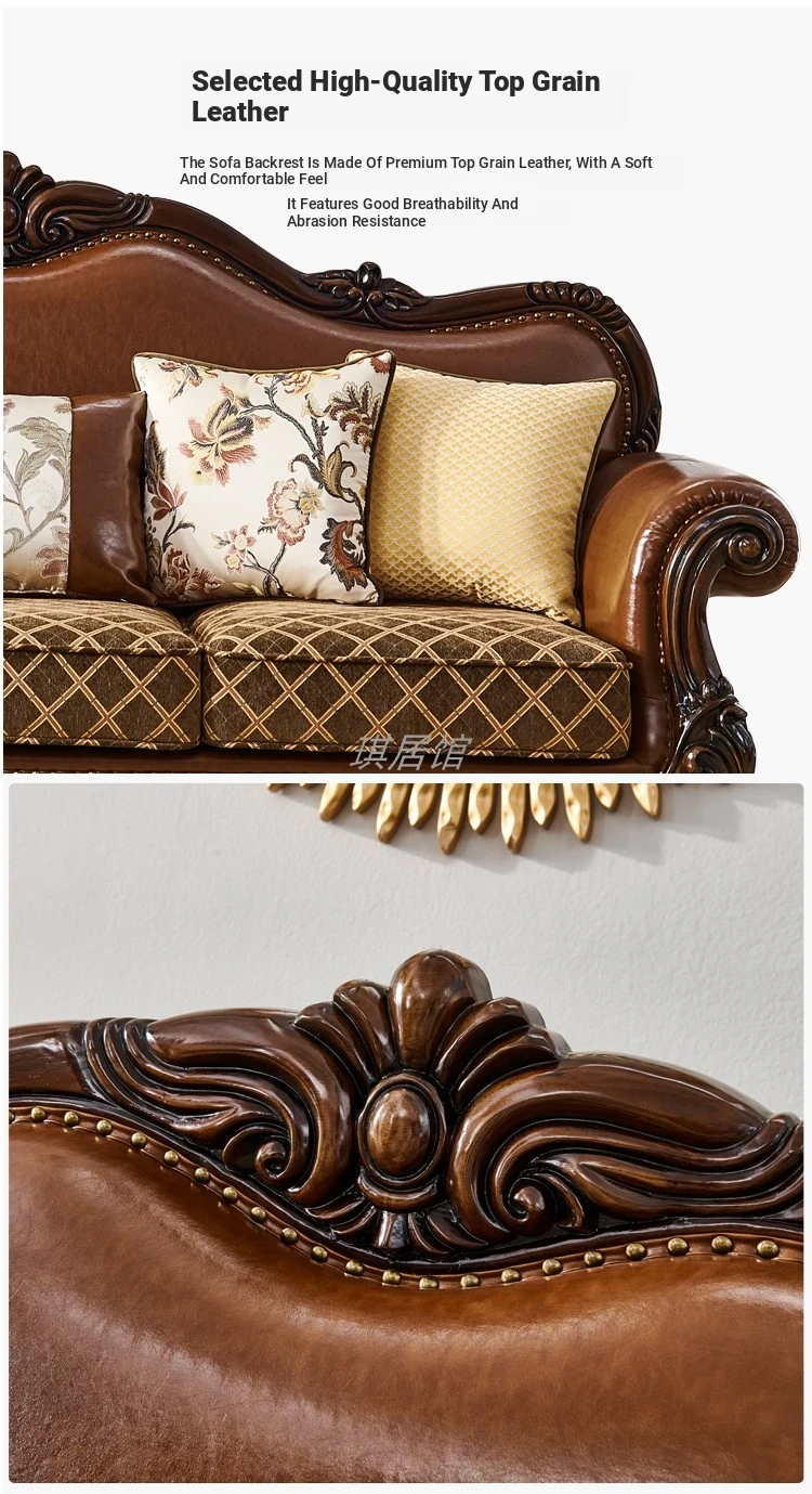 American Genuine Leather Sofa Set - Top Layer Yellow Cowhide Retro Style Living Room Sofa for Large Spaces, 3-Piece Combination Furniture