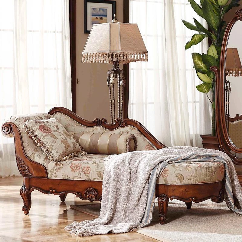 American Style Chaise Lounge - Luxurious Upholstered Sofa for Bedroom and Living Room, Elegant Wooden French Chaise, Perfect for Relaxing and Unwinding.