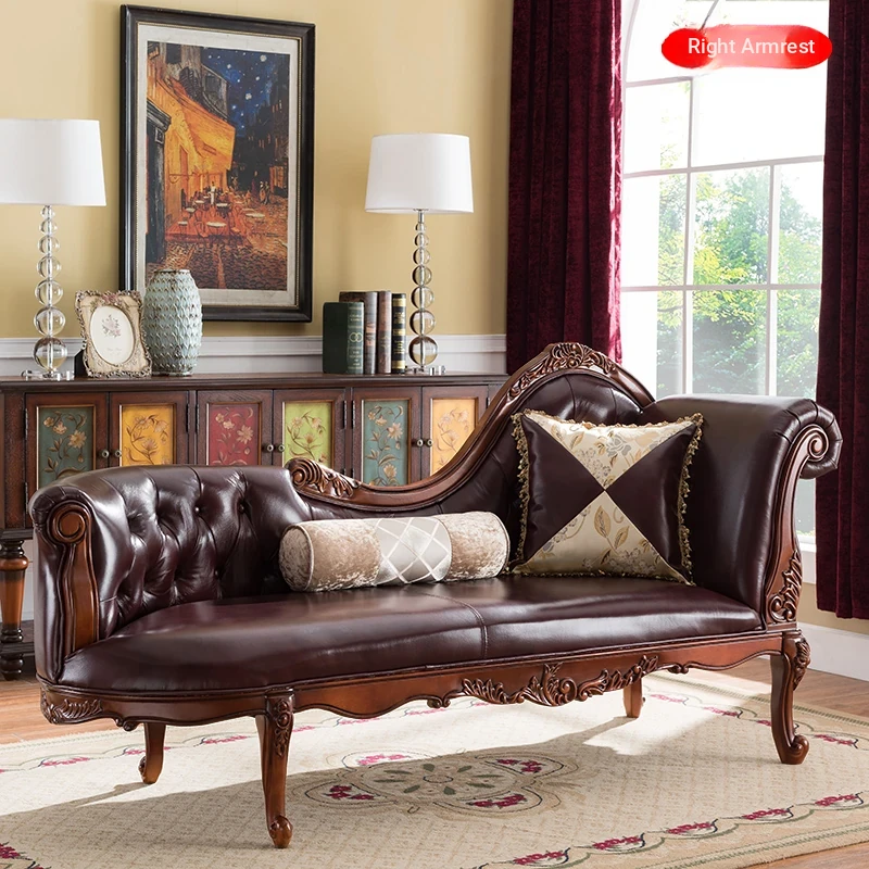 American Style Solid Wood Chaise Lounge - Multifunctional Recliner, Single Sofa Chair for Living Room, Bedroom Beauty Couch, Perfect for Small Spaces, Cozy Leisure Chair