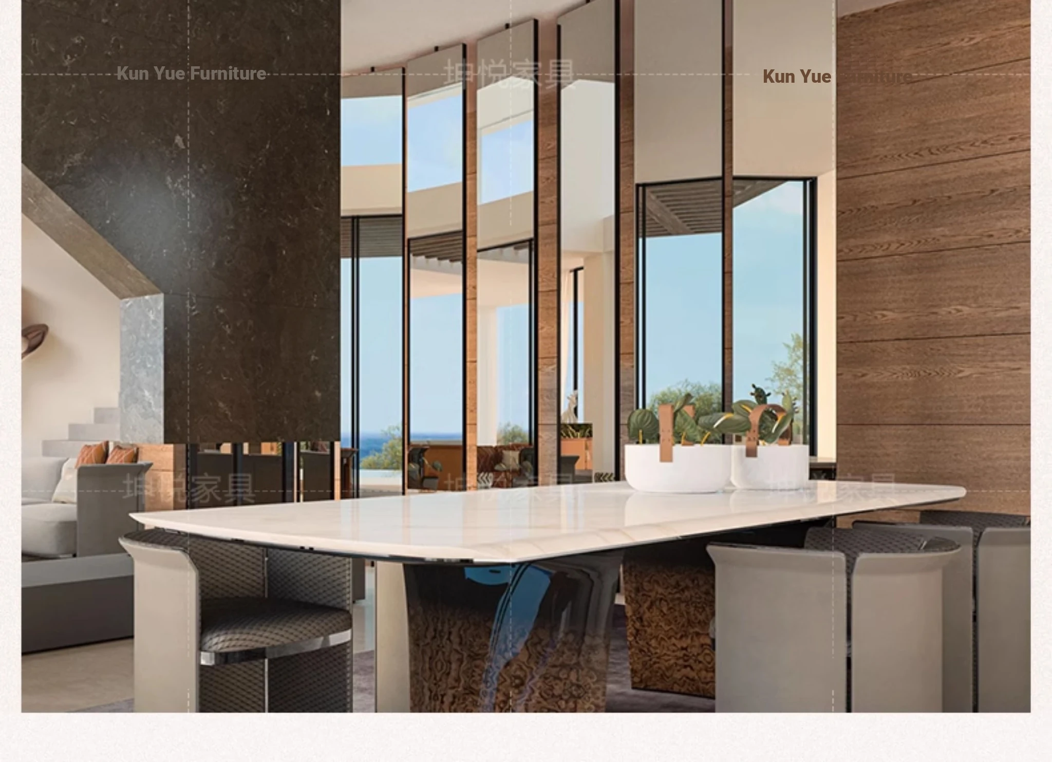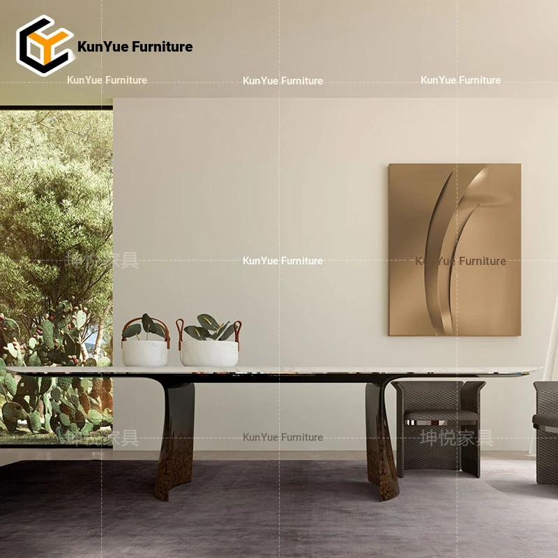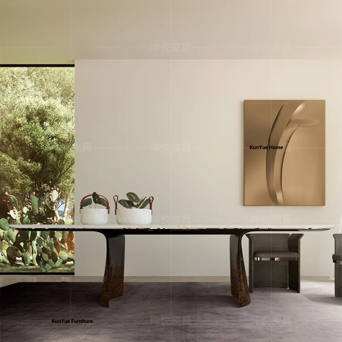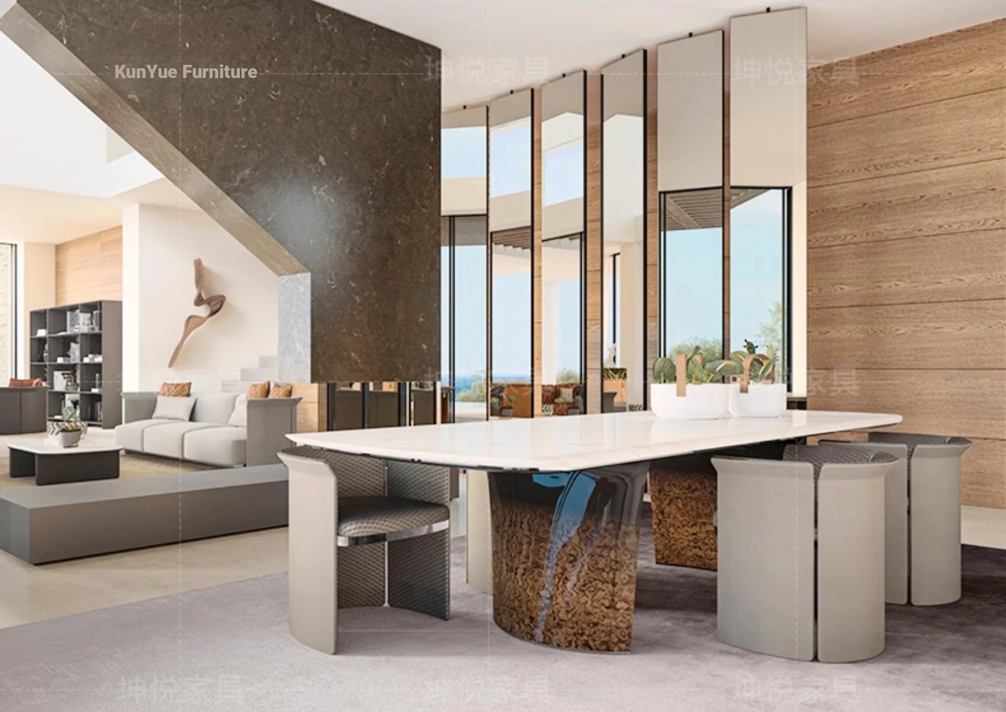 Bentley Luxury Dining Table - Elegant Marble and Solid Wood Long Table for Villas and Home Use - Stylish Round Design for Modern Living Spaces