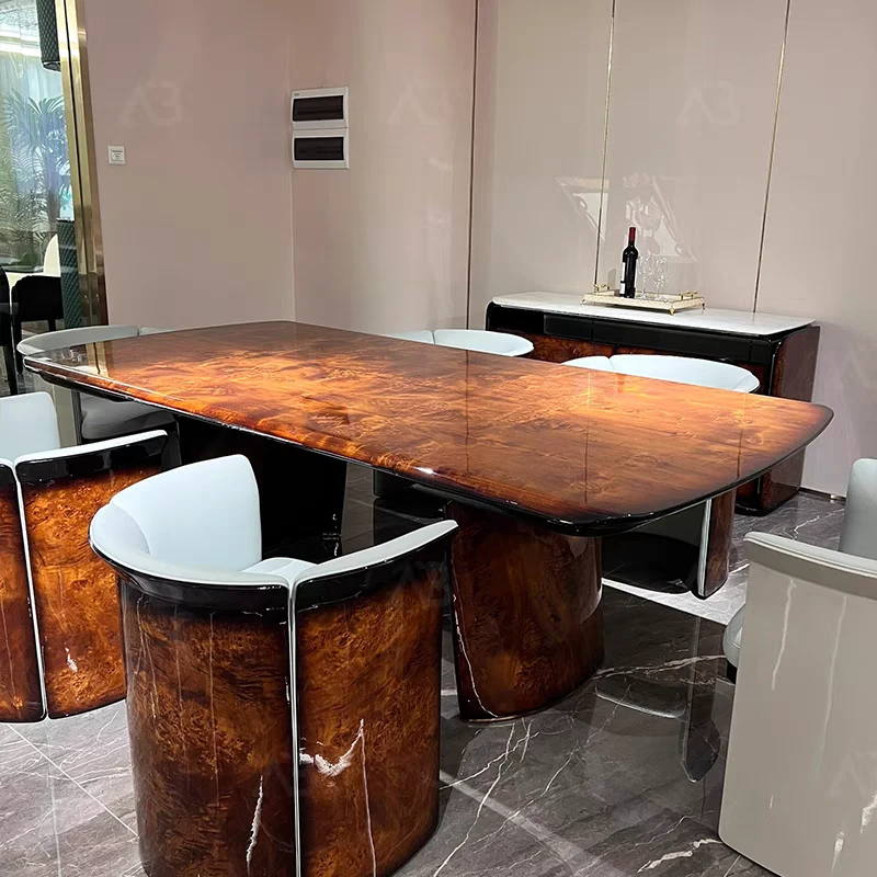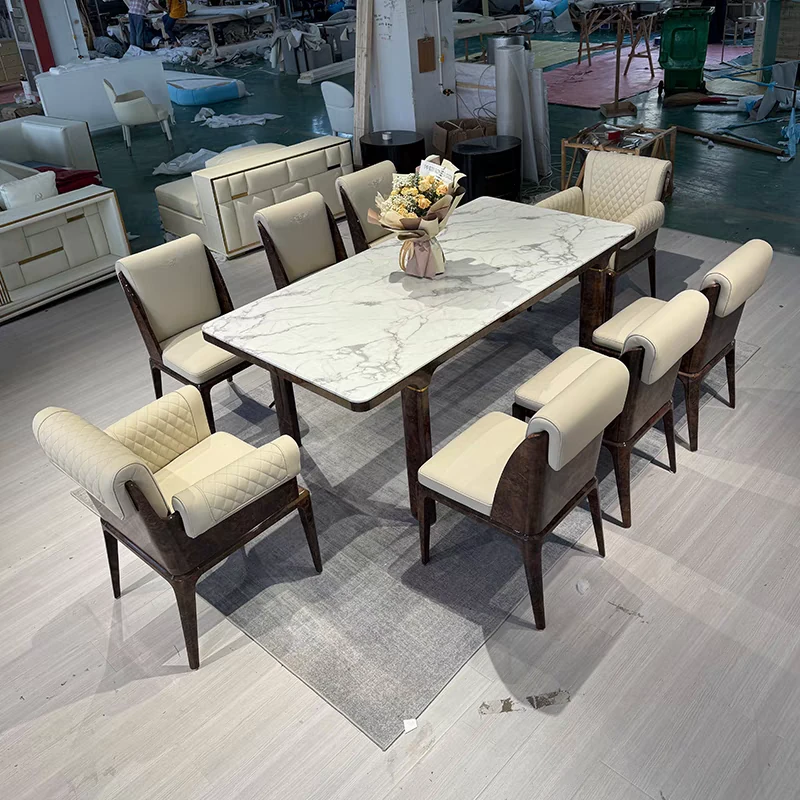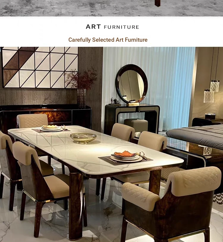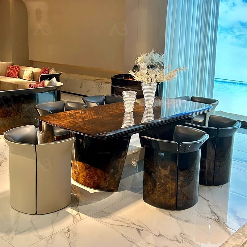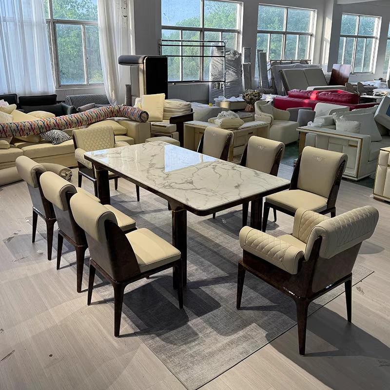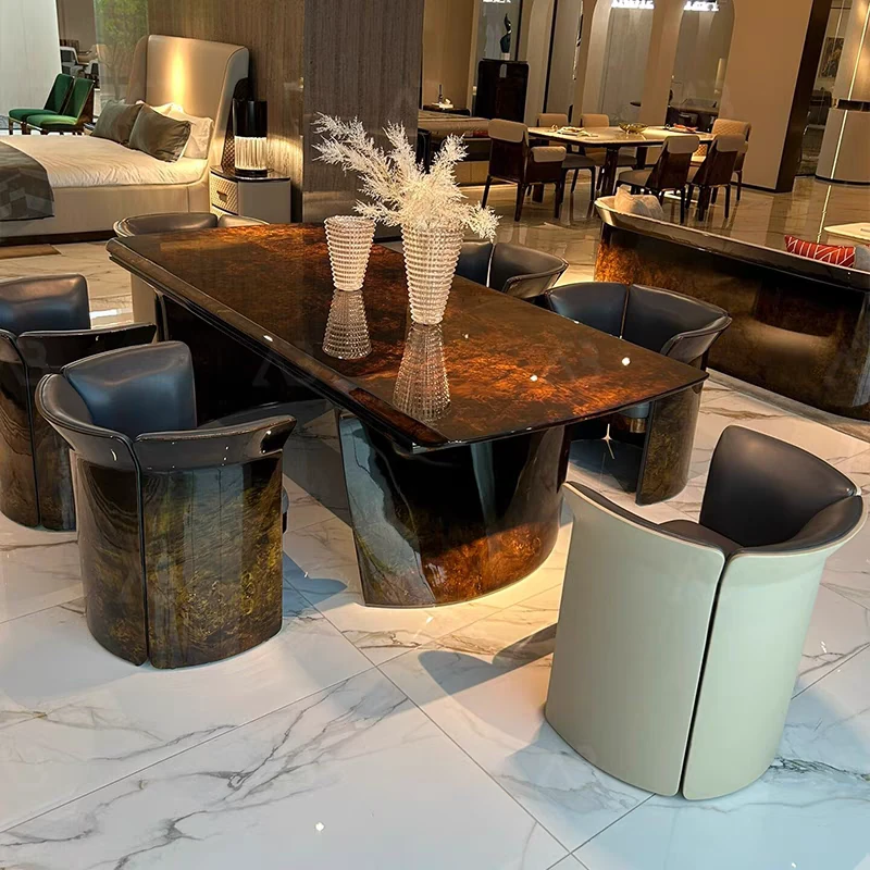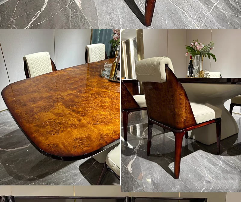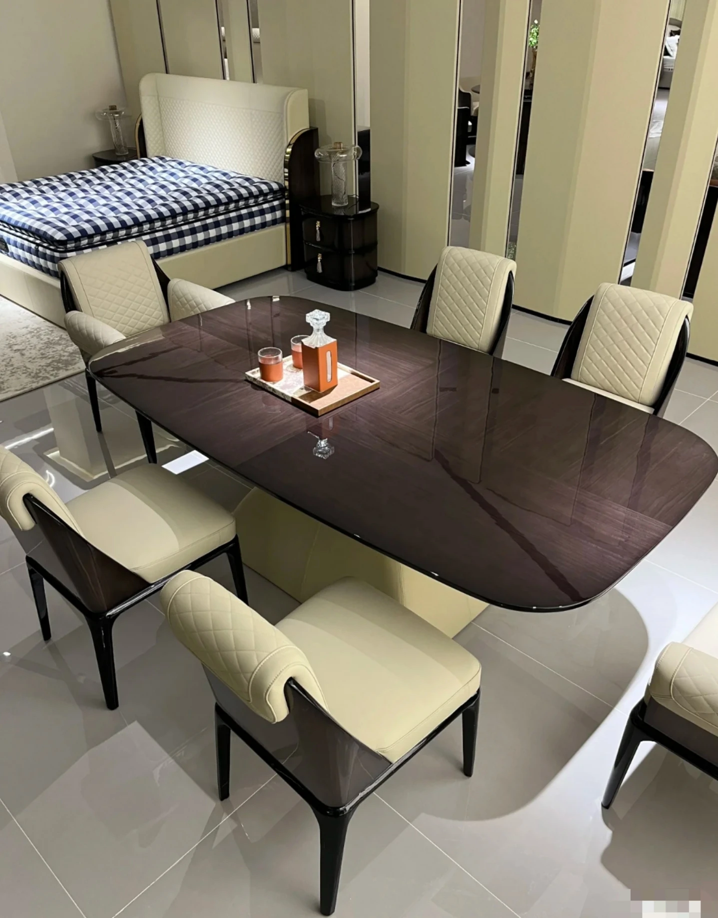 Bentlry Italian Luxury Solid Wood Dining Table and Chair Set - Elegant Oval Dining Table for Spacious Villas and High-End Living