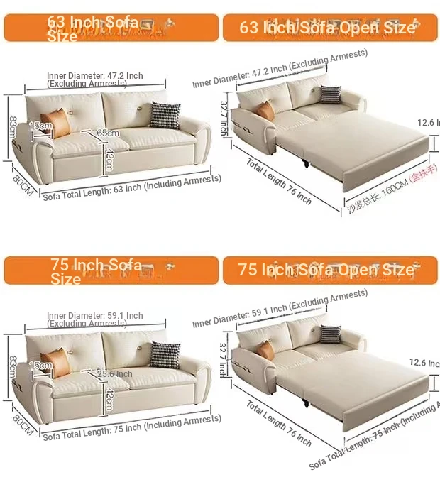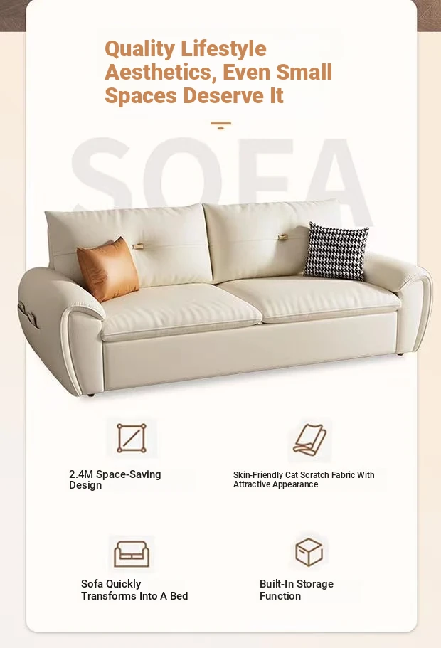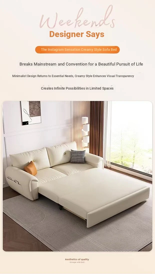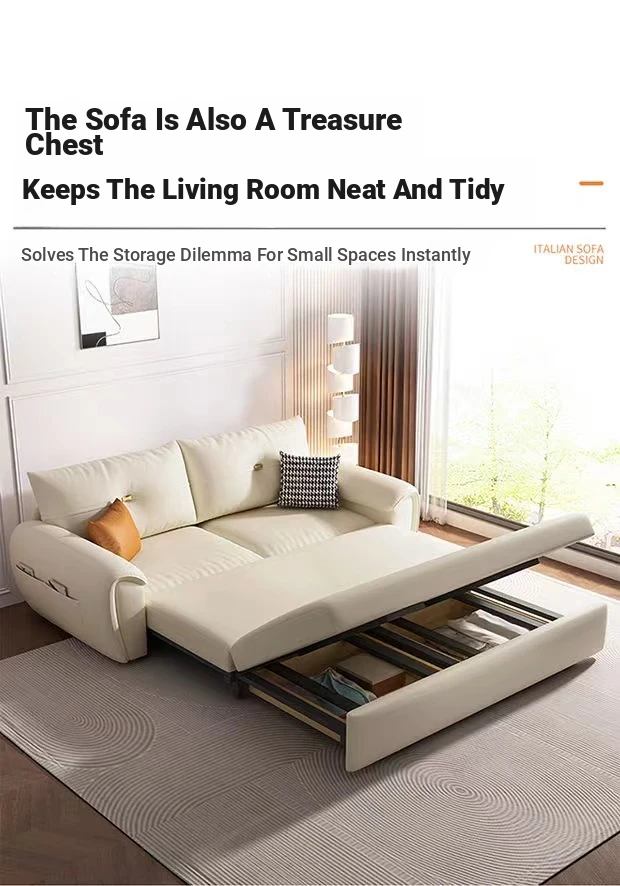 Charming Dual-Use Sofa Bed - Space-Saving, Foldable, Multifunctional Design for Small Apartments, Luxurious Expandable Single & Double Bed with Storage Solutions