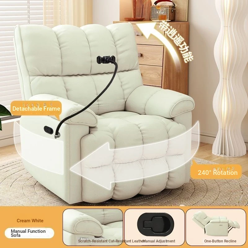 Cream Single Reclining Sofa Chair - Multi-functional Lounge Chair for Living Room and Bedroom - Cozy Rocking Chair for Ultimate Relaxation and Comfort