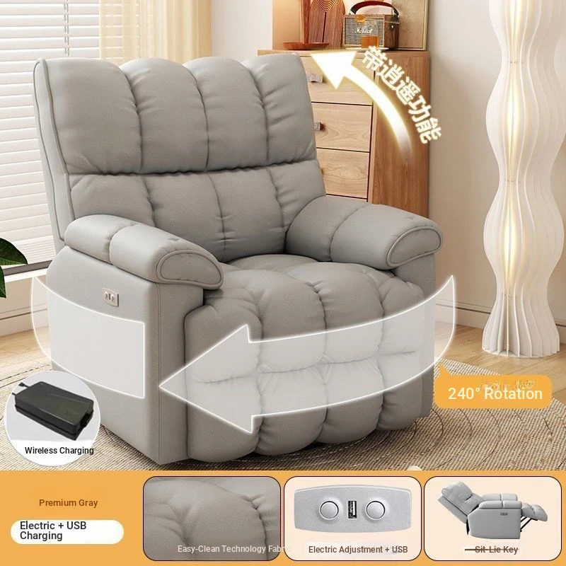[Technology Cloth] light gray (Latex))_Model (Electric Sitting, Lying, Rolling, Wireless Power Storage Mobile Phone Bracket + USB)