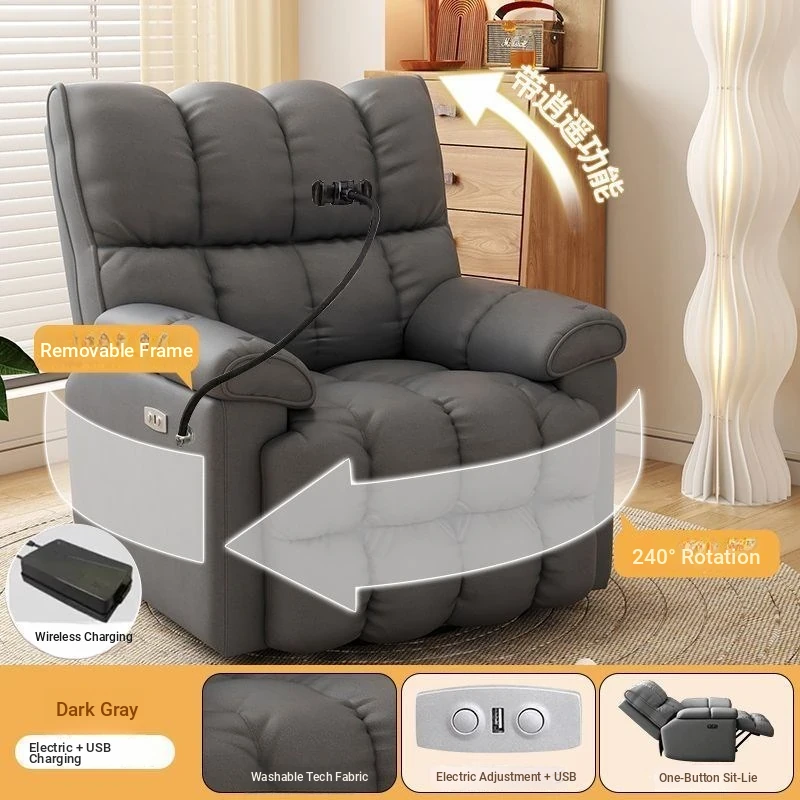 [Technology Cloth] dark gray (Latex))_Model (Electric Sitting, Lying, Rolling, Wireless Power Storage Mobile Phone Bracket + USB)