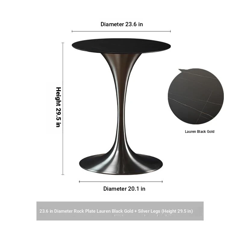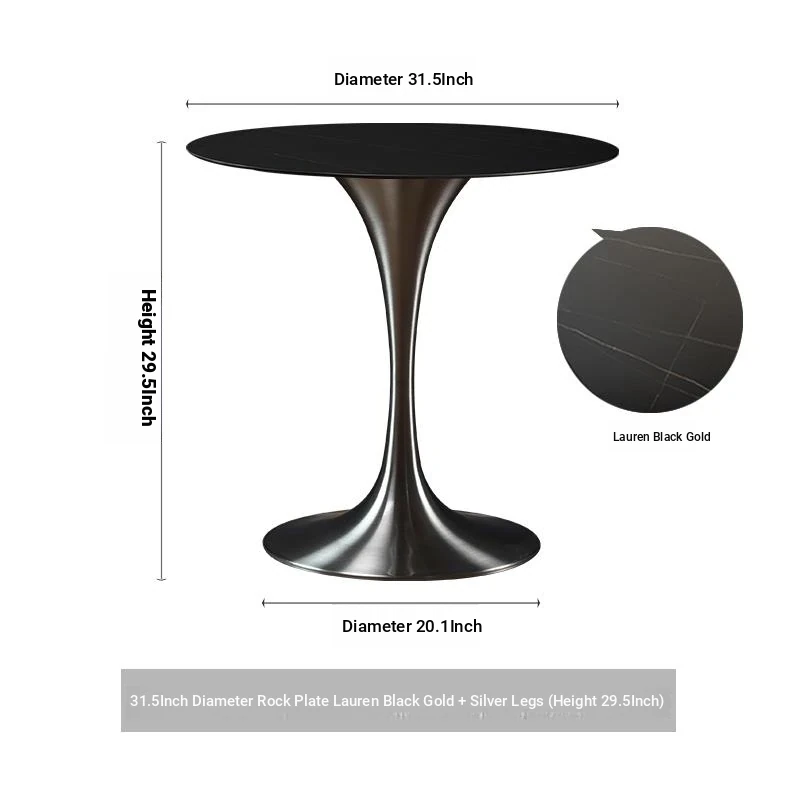 Rock plate Lauren black gold 80 diameter + Silver foot height 29.53in desktop textured