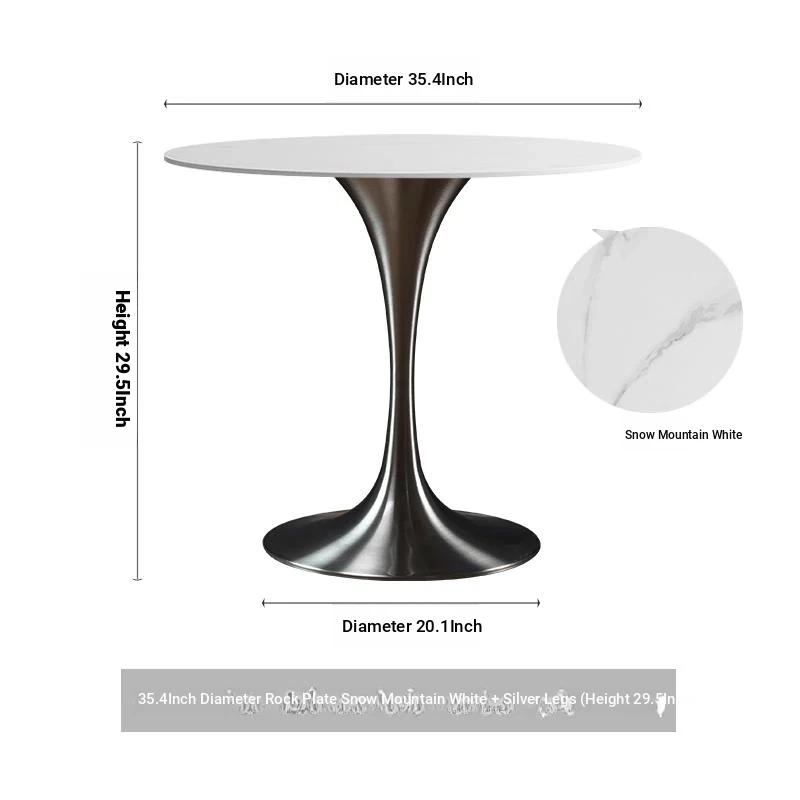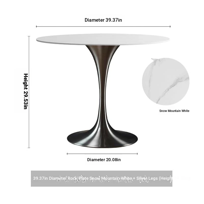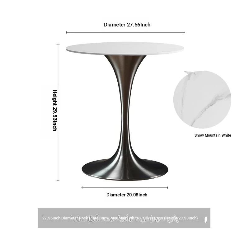 Rock plate snow mountain White 60 diameter + Silver foot height 29.53in desktop texture