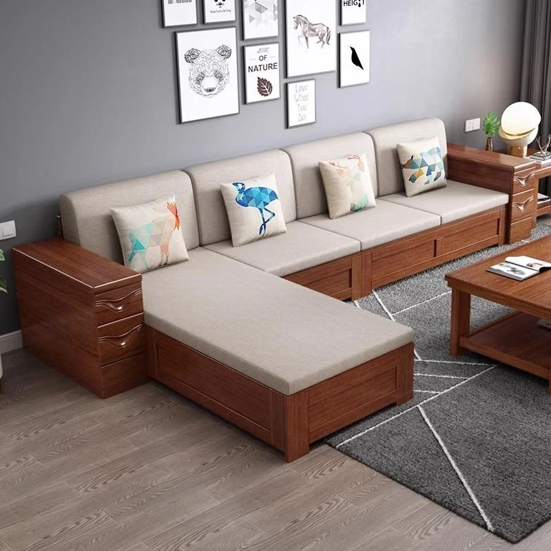 Economical and Minimalist Solid Wood Sofa and Coffee Table Set - Chinese Style Fabric Sofa Bed for Small Spaces, Perfect Home Furniture