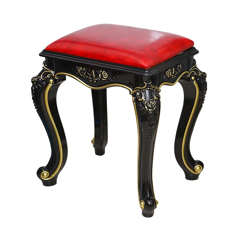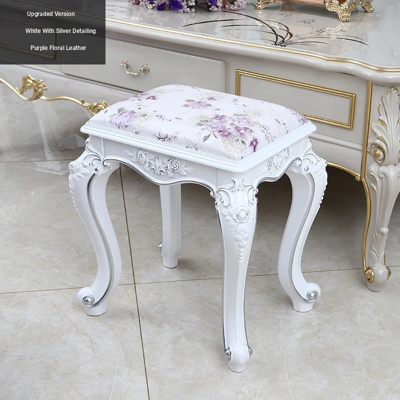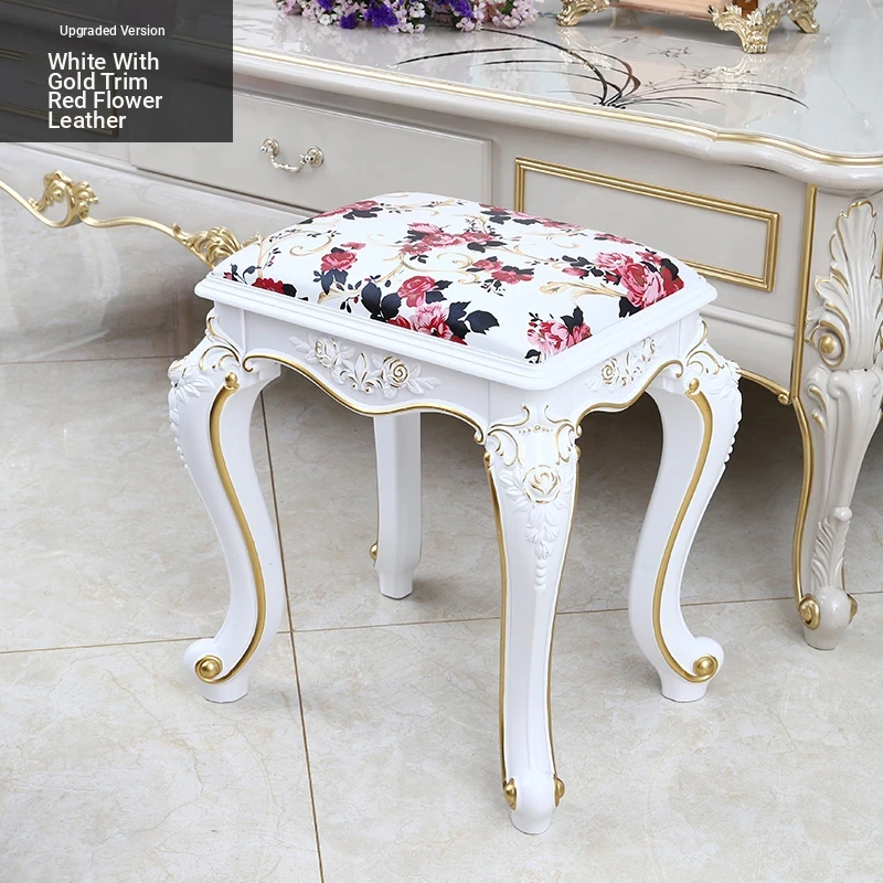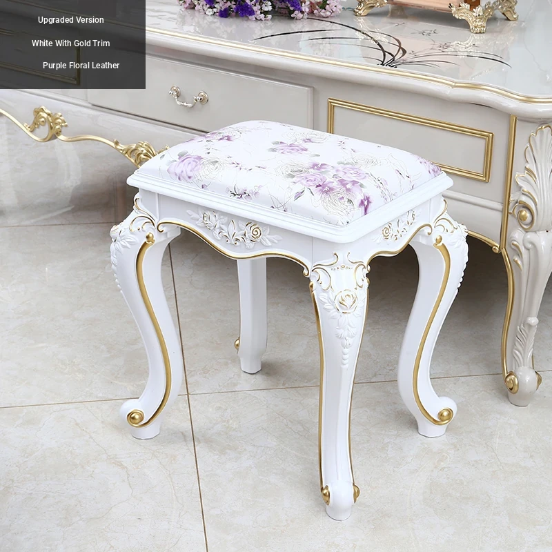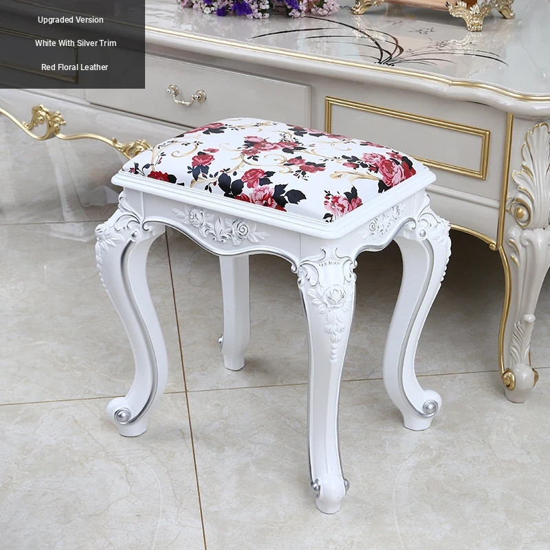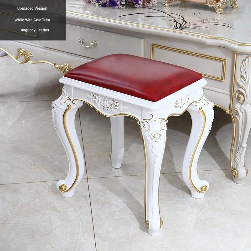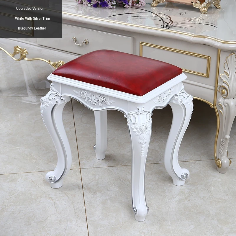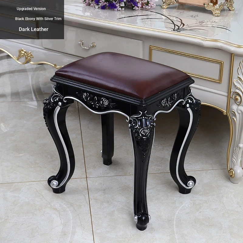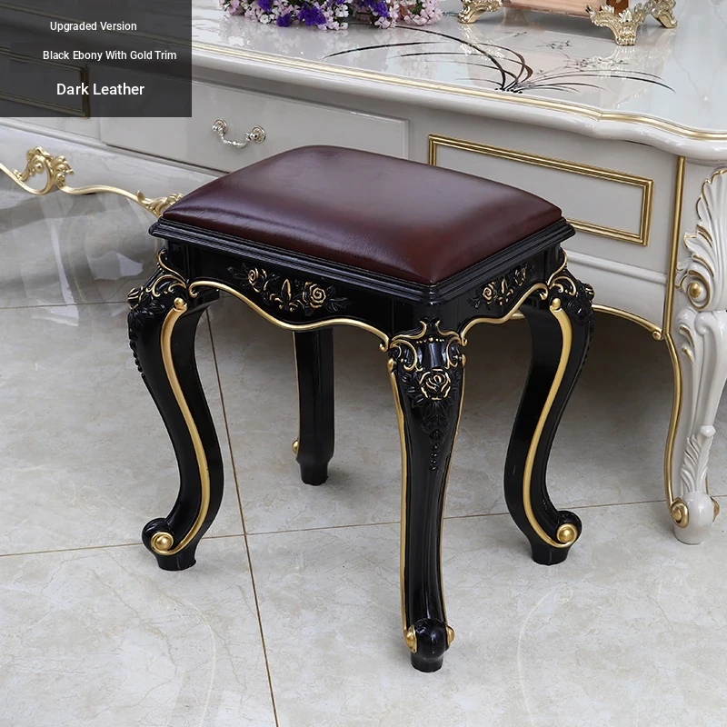 Elegant European-Style Vanity Stool with Exquisite Carvings - Versatile PU Leather Makeup Stool, Shoe Bench, or Dining Table Seat - Perfect for Beauty Treatments and Nail Art!