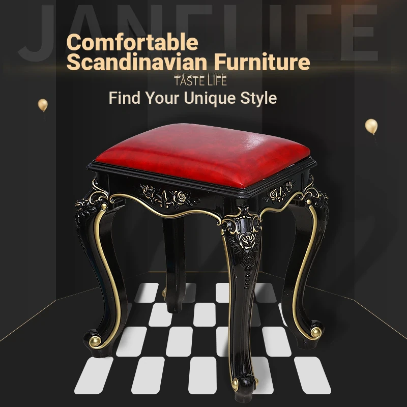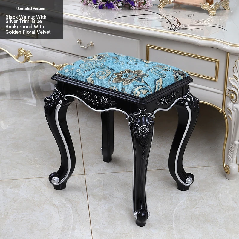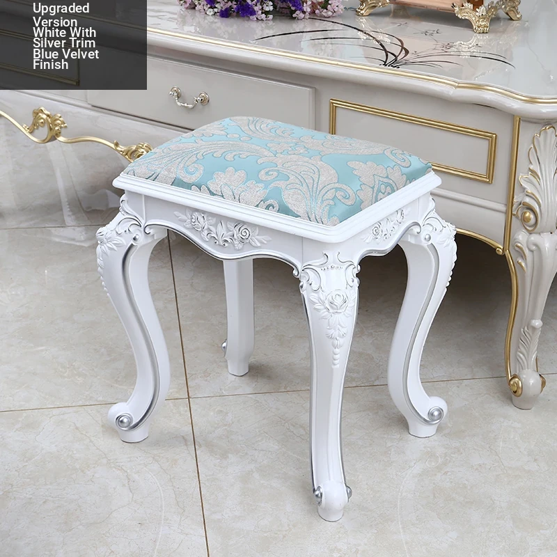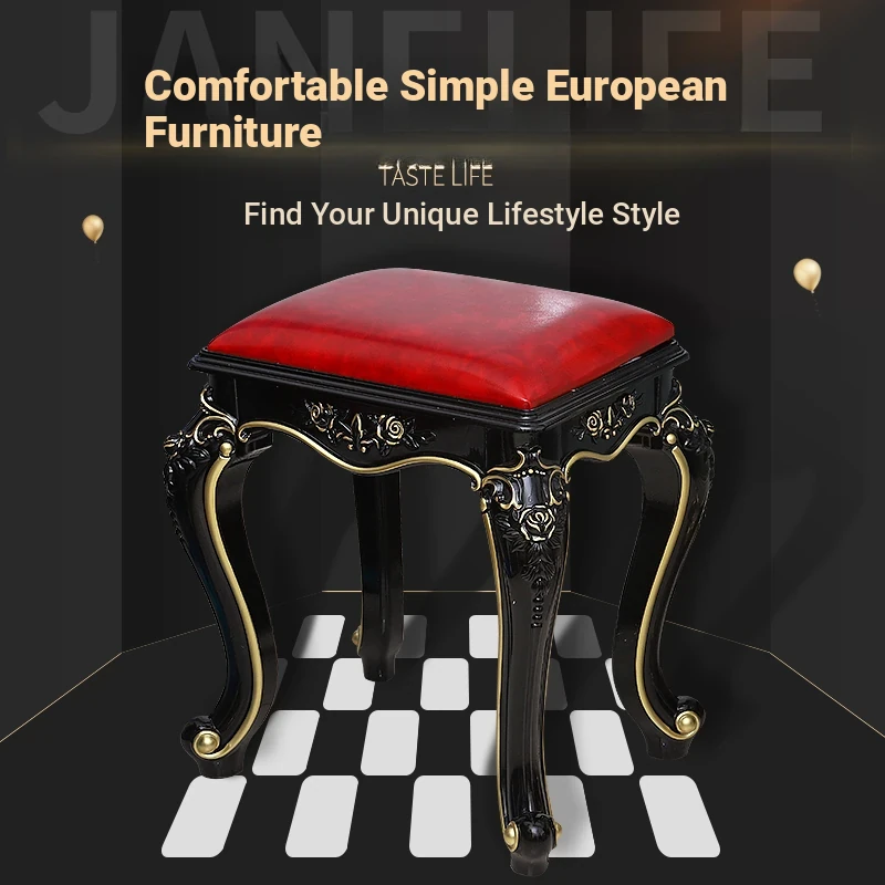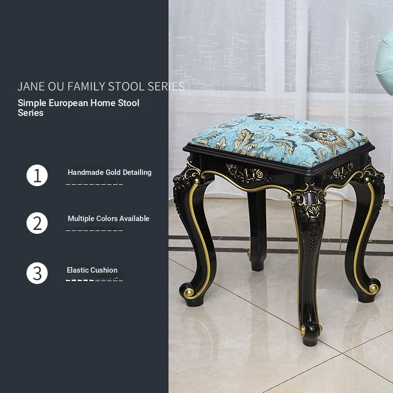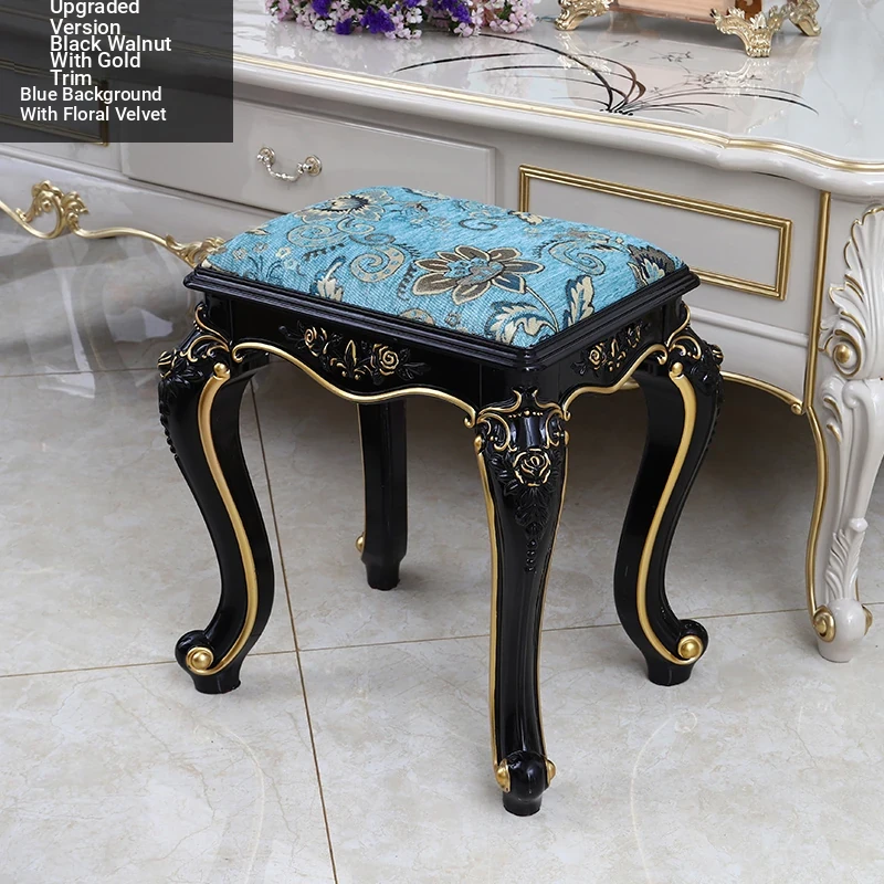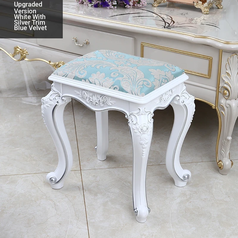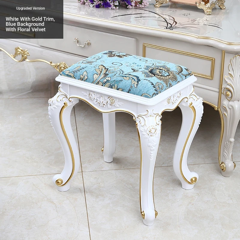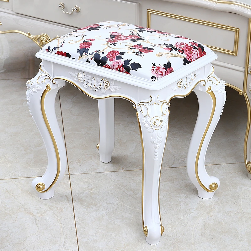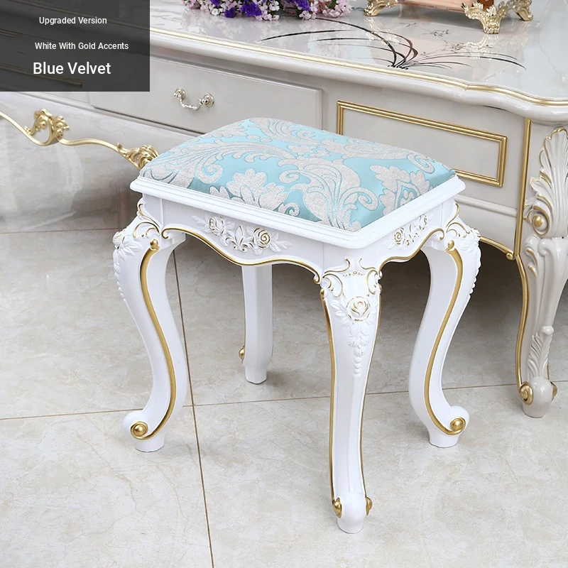 Elegant European-Style Vanity Stool with Exquisite Carvings - Versatile PU Leather Makeup Stool, Shoe Bench, or Dining Table Seat - Perfect for Beauty Treatments and Nail Art!
