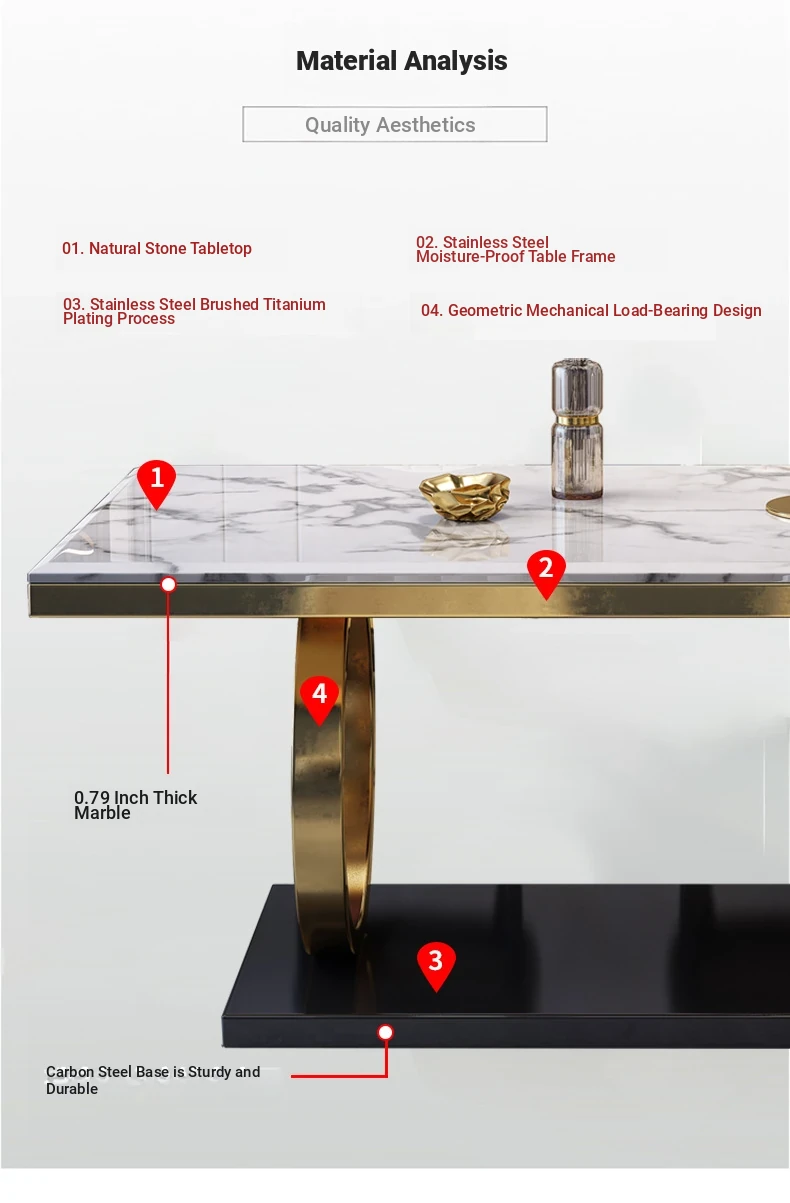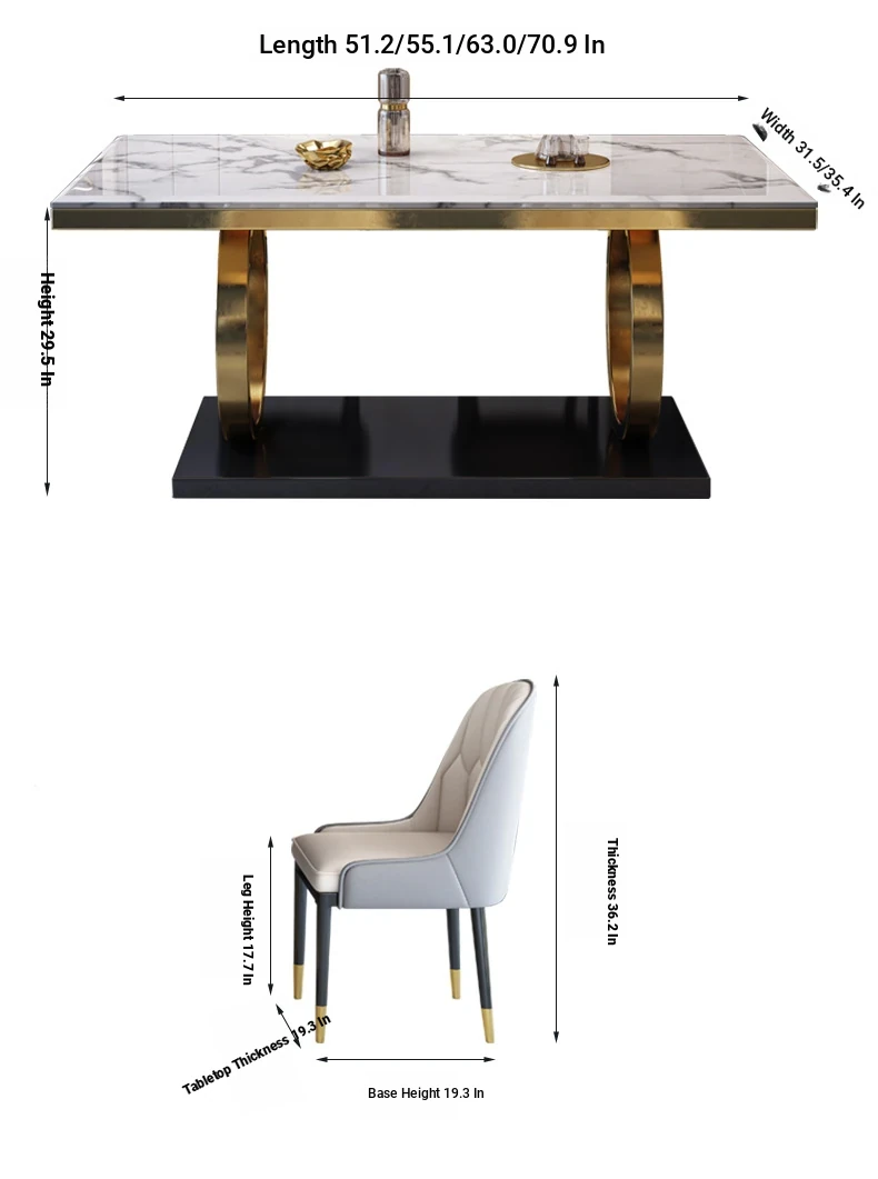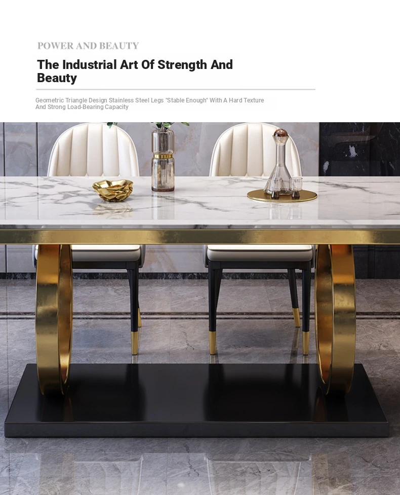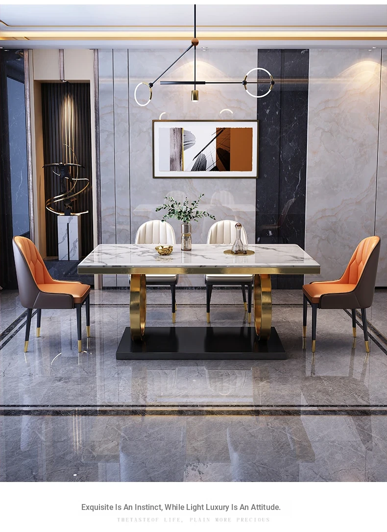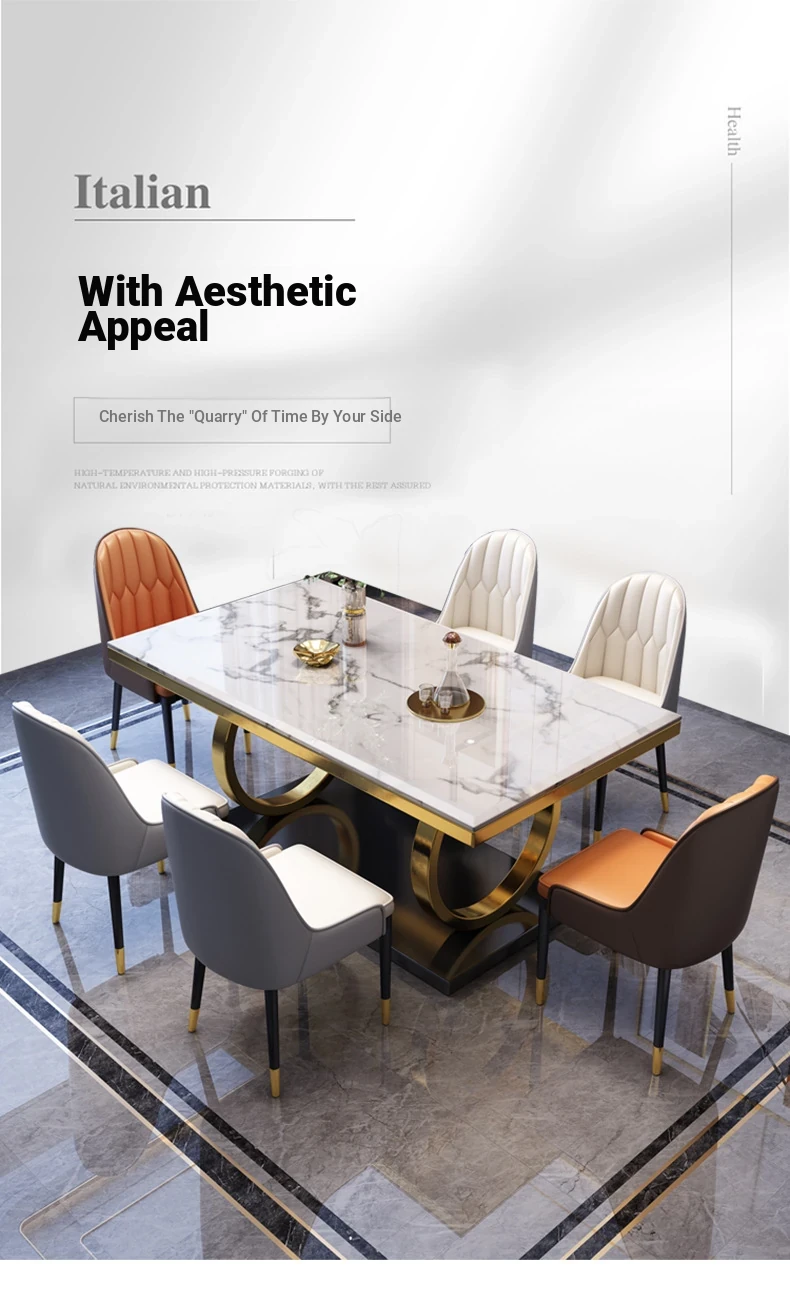 Elegant Marble Dining Table and Chair Set - Modern Minimalist Gold Rectangular Design for Small Spaces, High-End Ceramic Dining Table for Home Use.