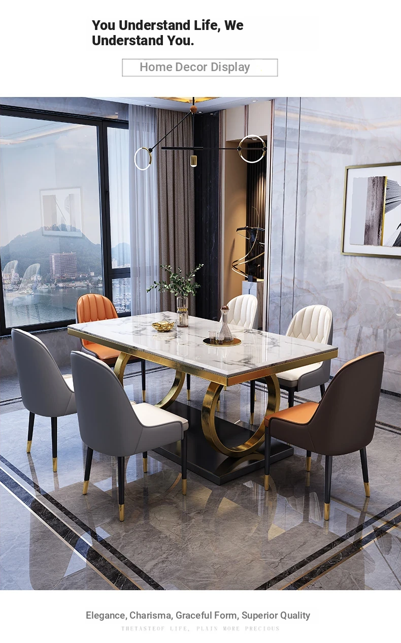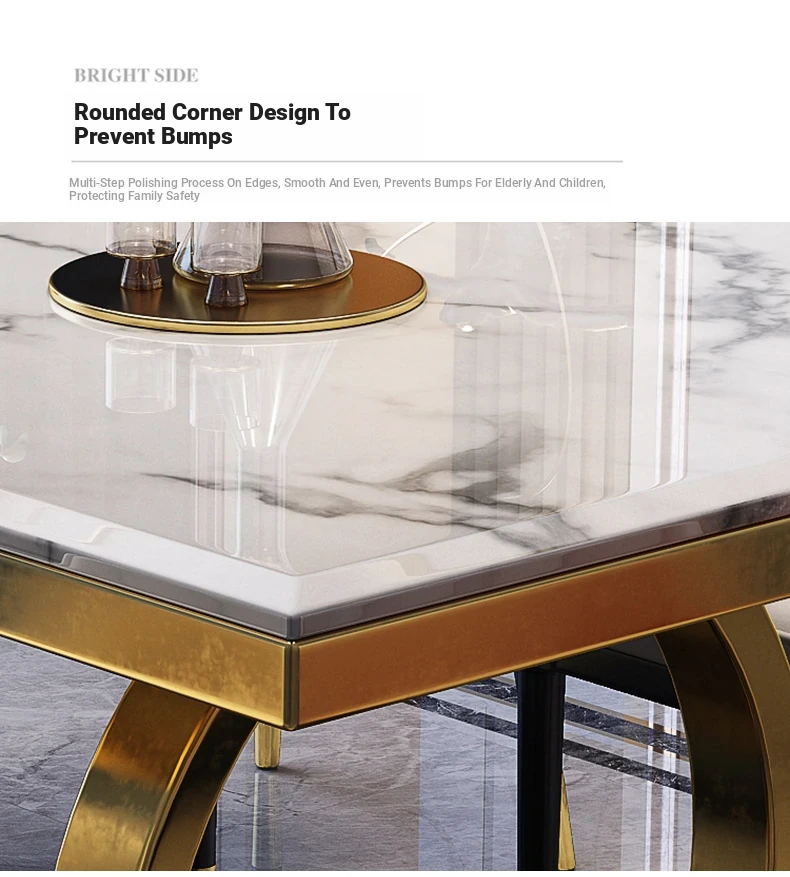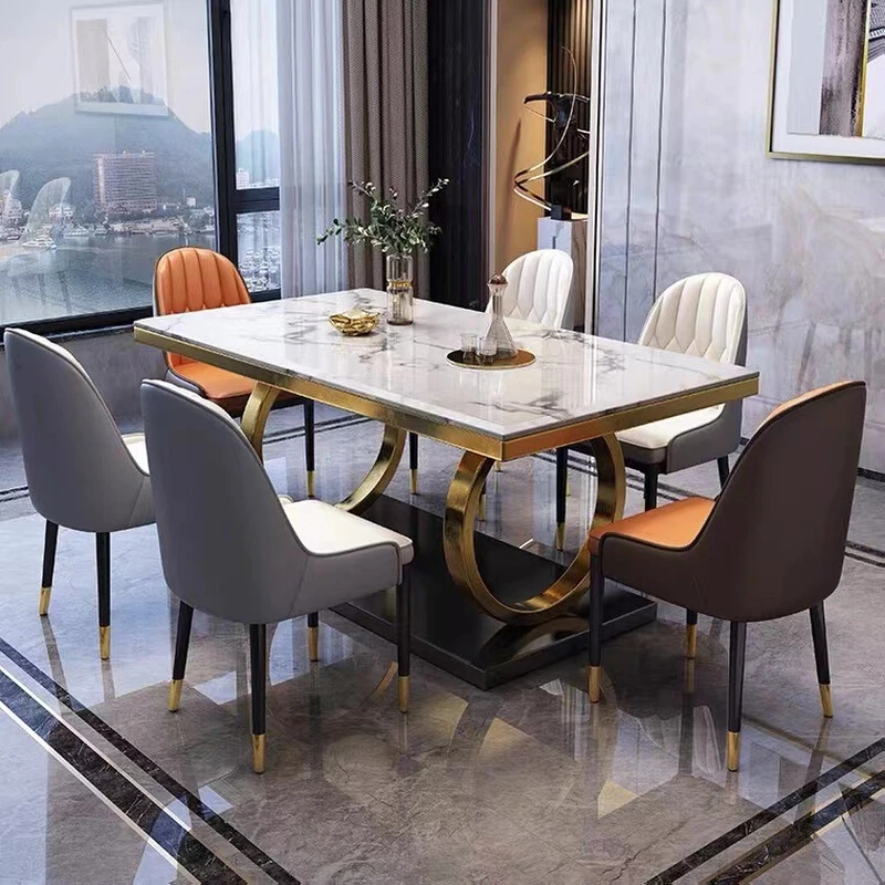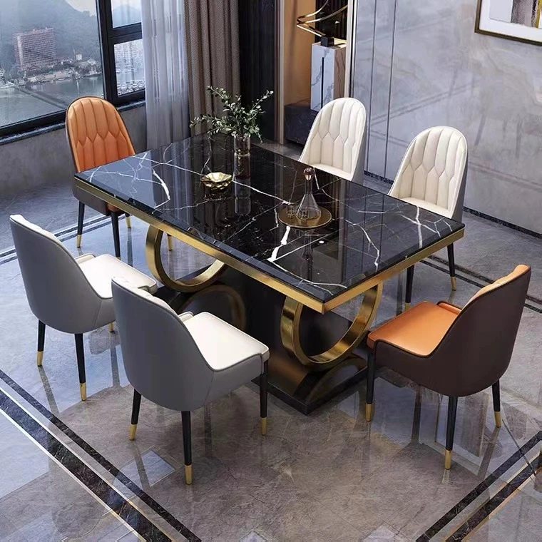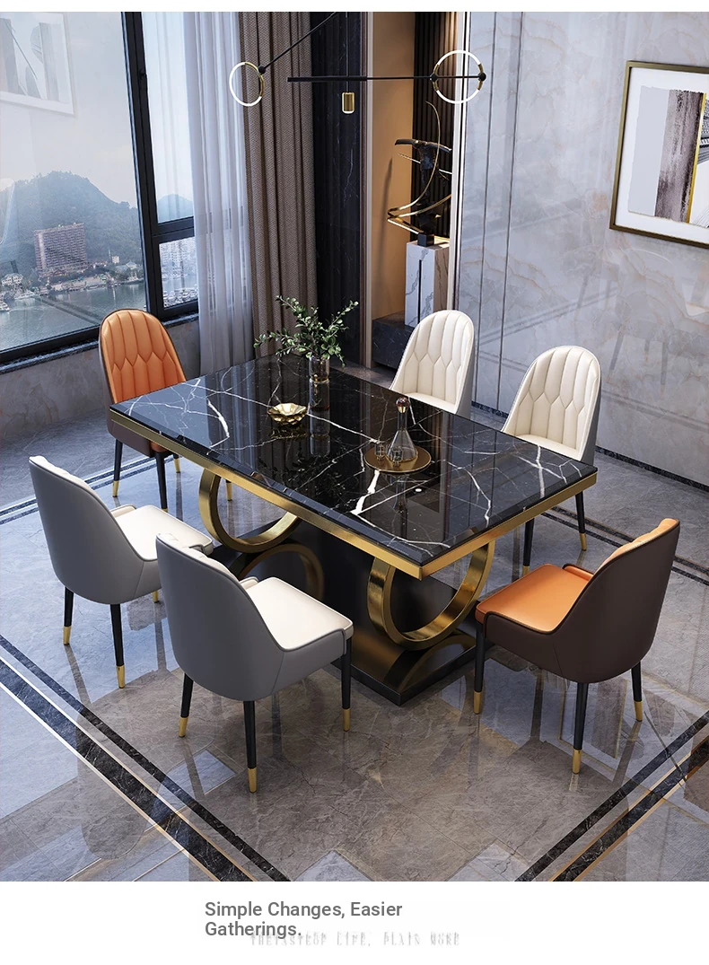 Elegant Marble Dining Table and Chair Set - Modern Minimalist Gold Rectangular Design for Small Spaces, High-End Ceramic Dining Table for Home Use.