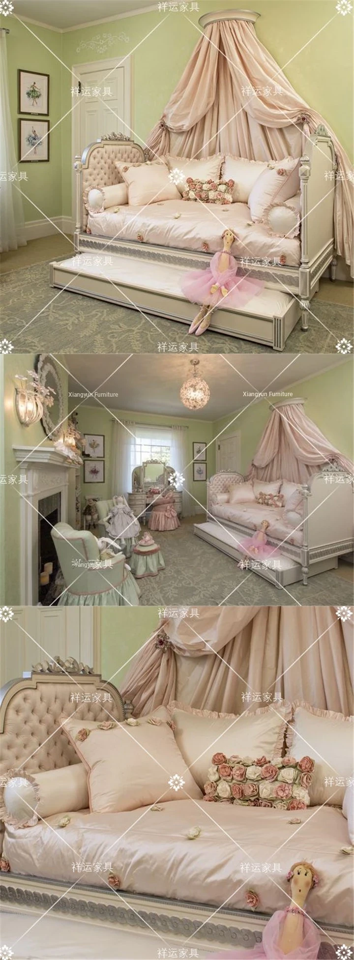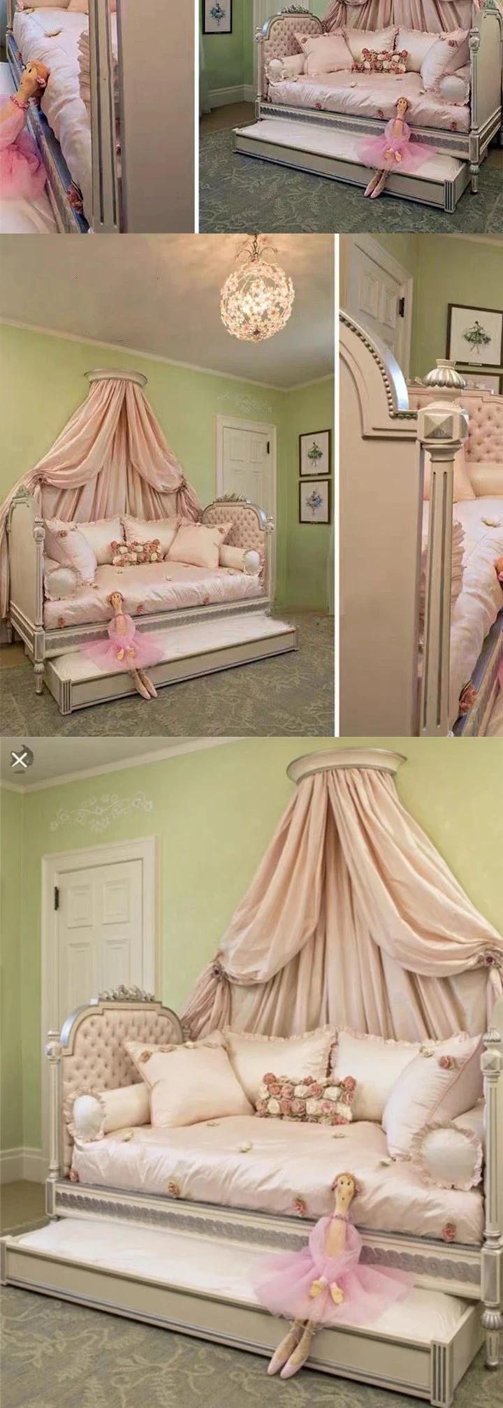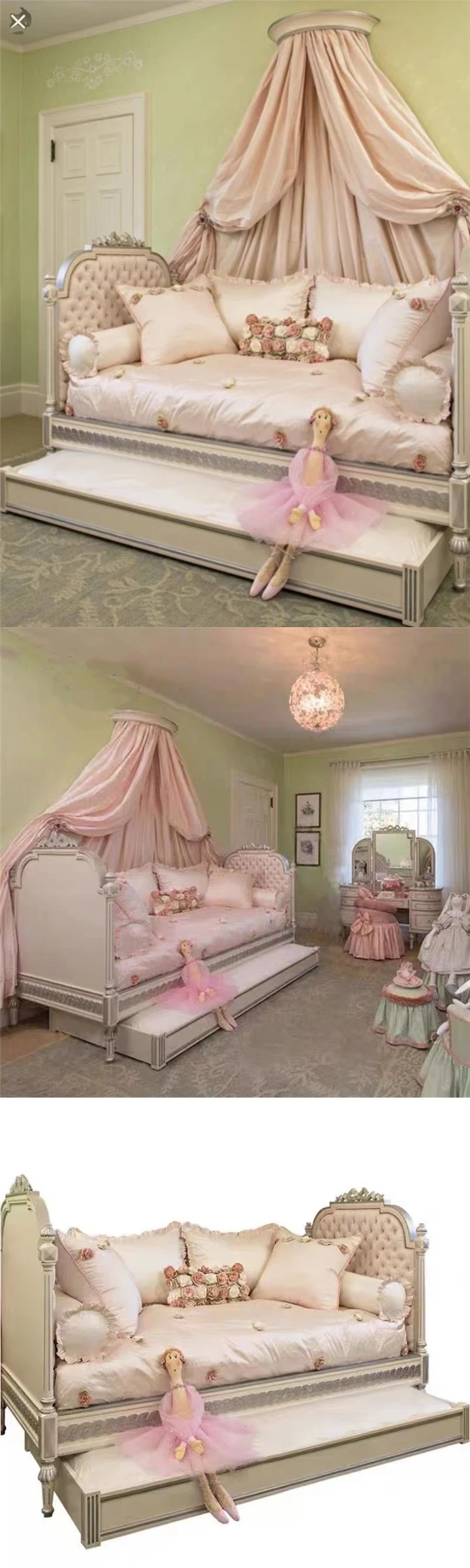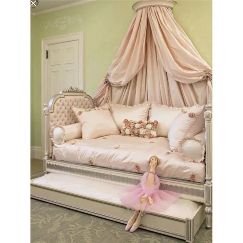 European Style Carved Solid Wood Sofa Bed - Versatile Pull-Out Bunk Bed for American Bedrooms, Ideal for Kids and Teens, Space-Saving Twin Over Twin Design, Perfect for Family Sleepovers.