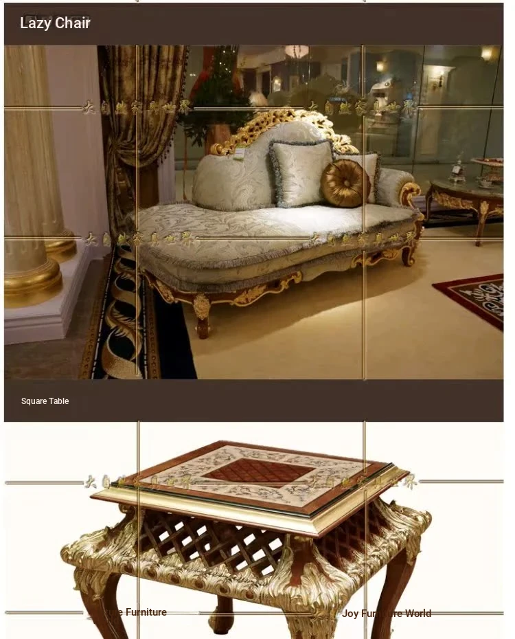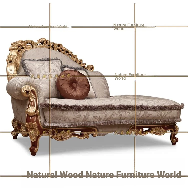 European-Style Solid Wood Carved Chaise Lounge - Premium Fabric Leisure Sofa - All-Wood Floral Design Daybed for Bedroom Relaxation