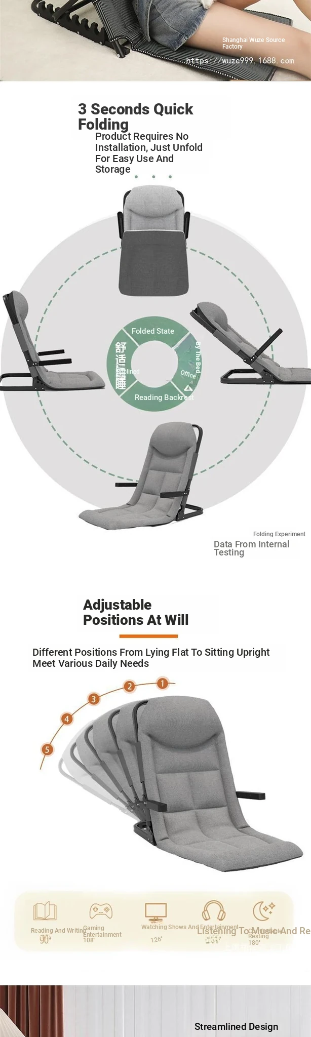 Foldable Backrest Chair for Bed - Adjustable Support Cushion for Elderly Care, Perfect for Tatami and Lazy Lounging, Comfortable and Convenient for Relaxation