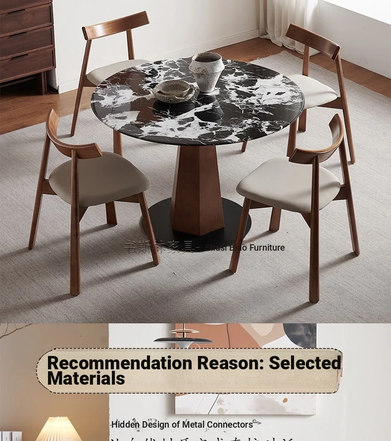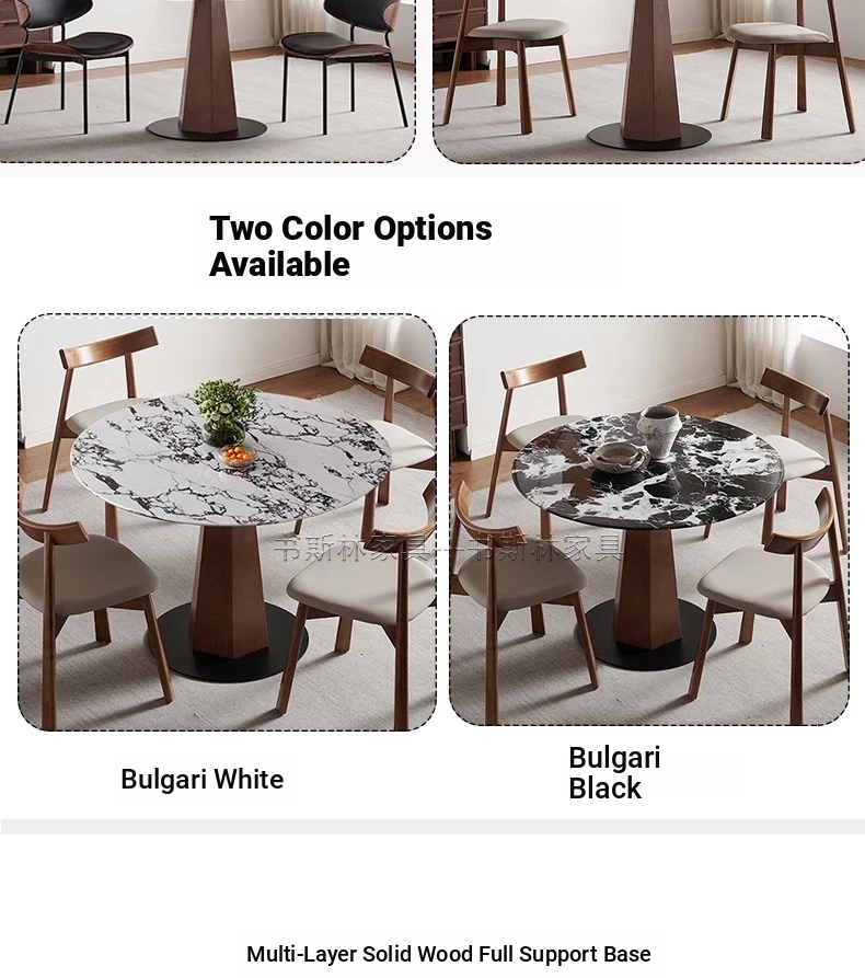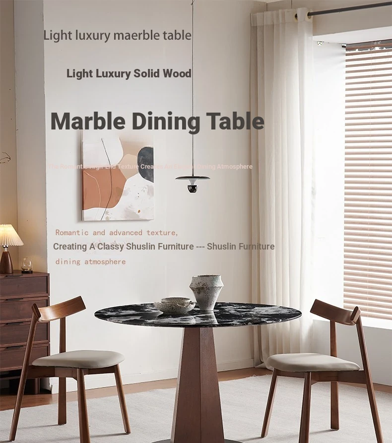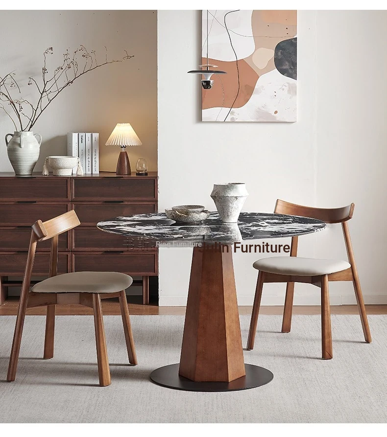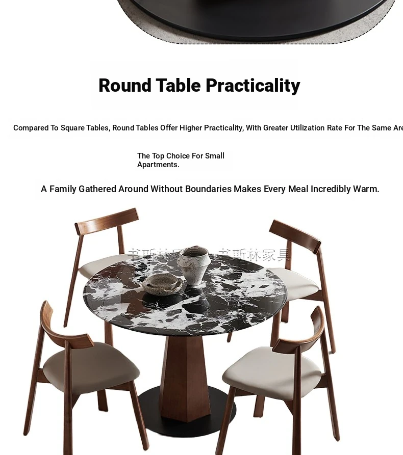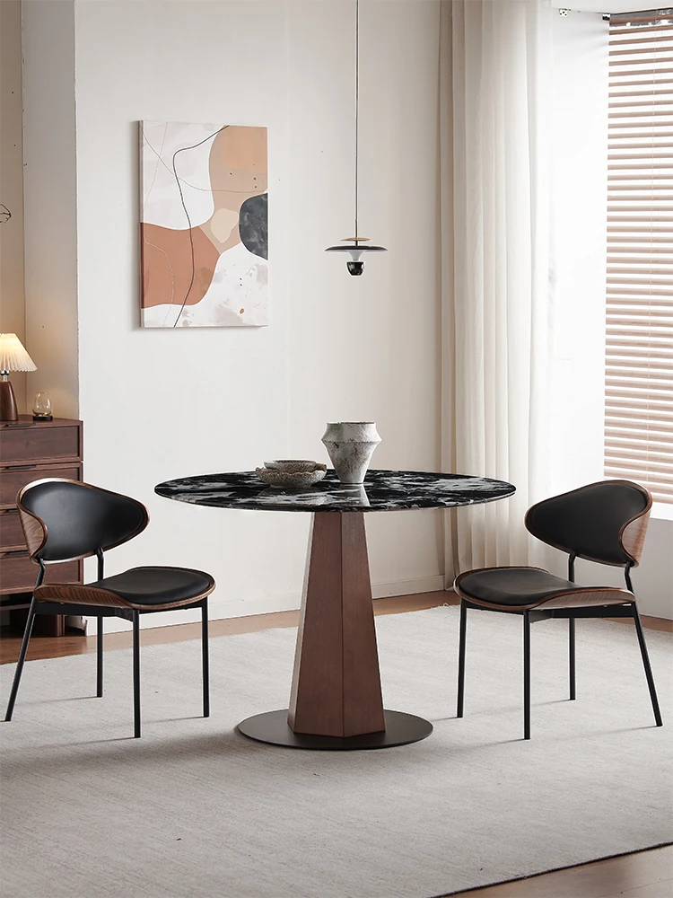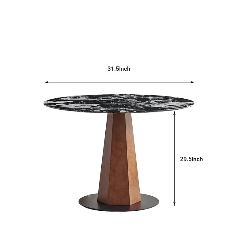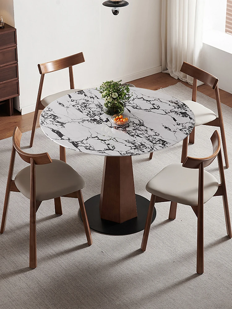 French Natural Marble Round Dining Table - Compact Mid-Century Walnut Solid Wood Design for Small Spaces - Perfect for Cozy Dining or Casual Meetings
