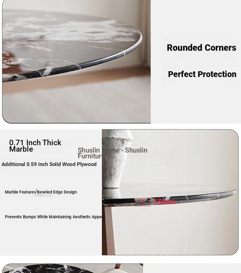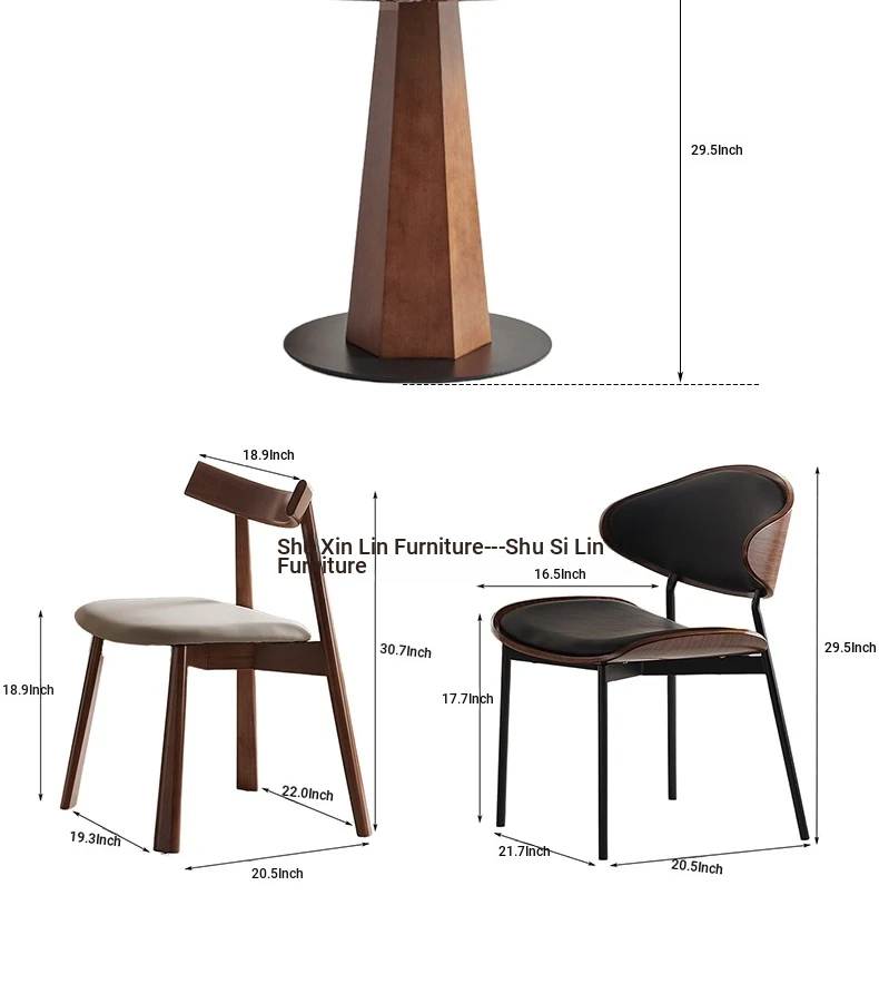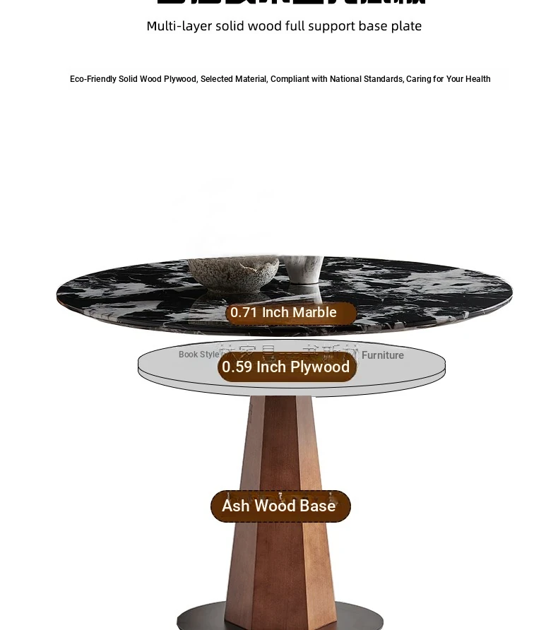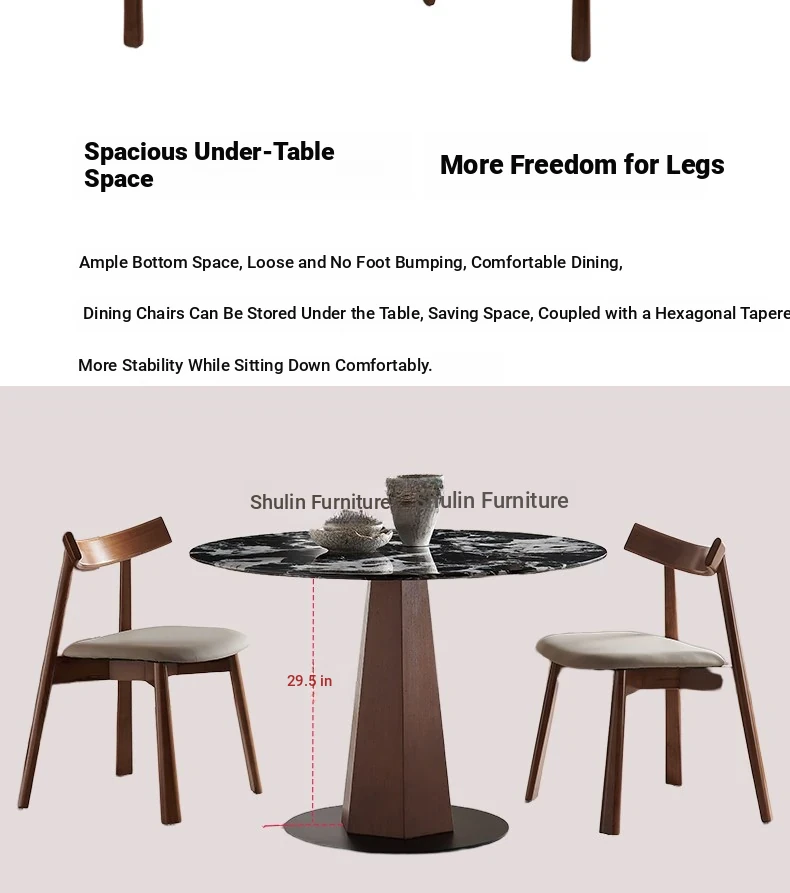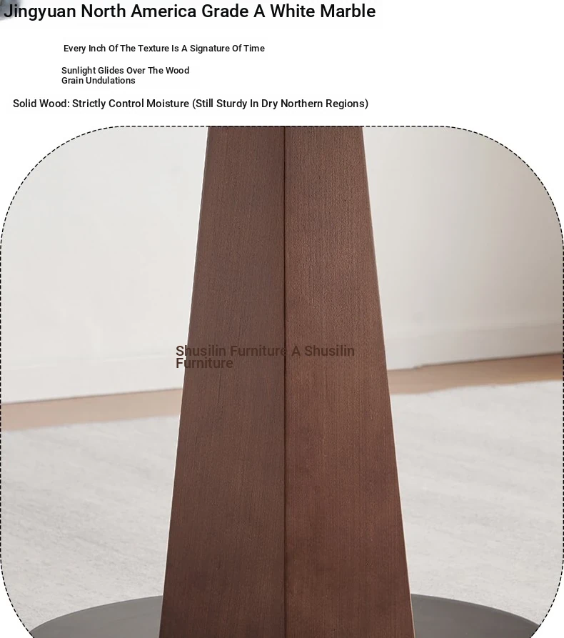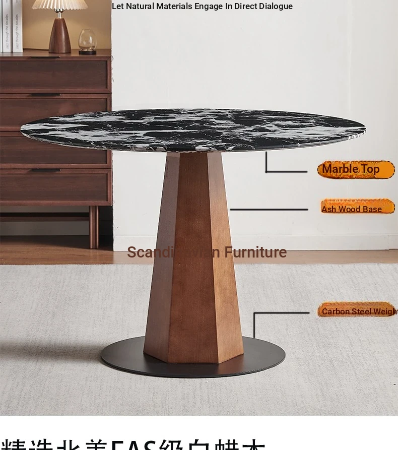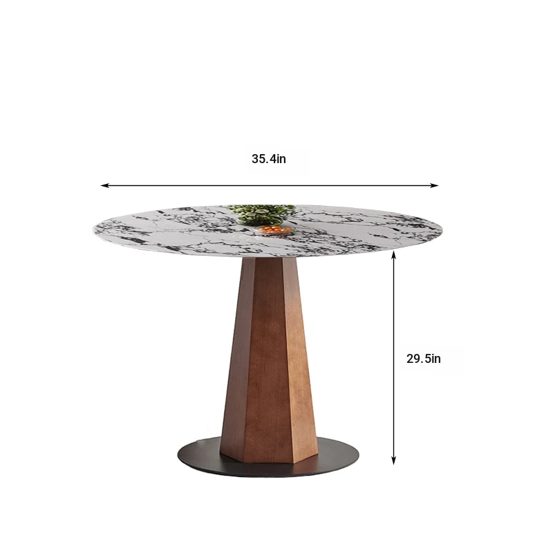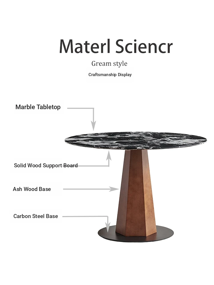 French Natural Marble Round Dining Table - Compact Mid-Century Walnut Solid Wood Design for Small Spaces - Perfect for Cozy Dining or Casual Meetings