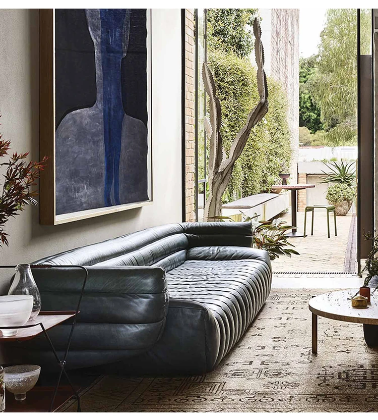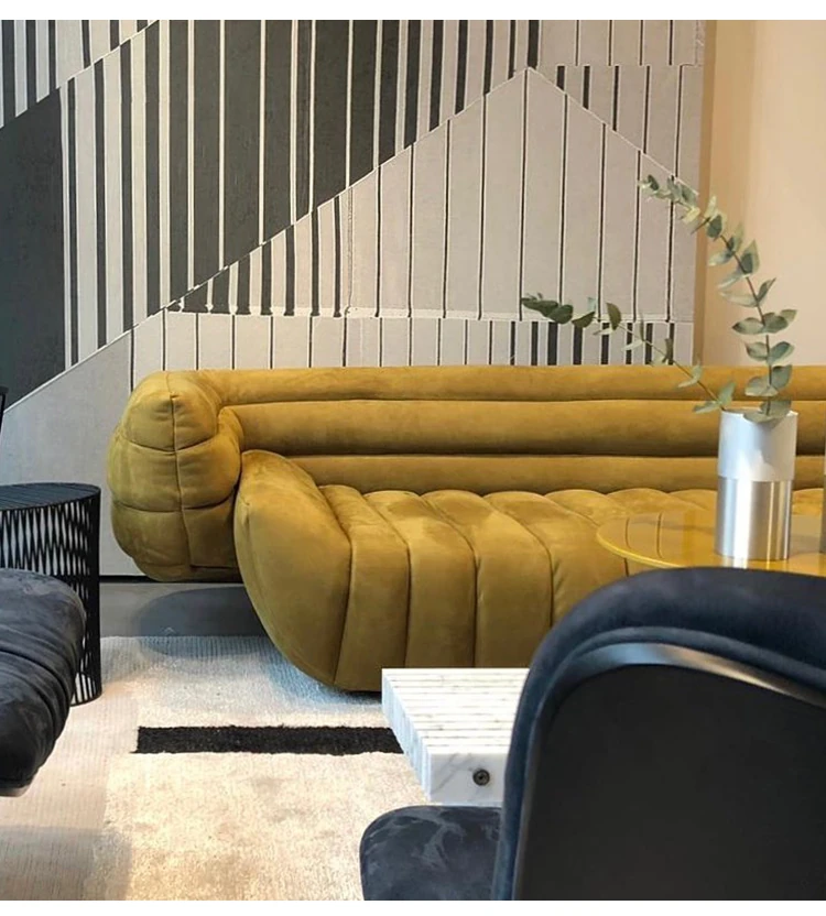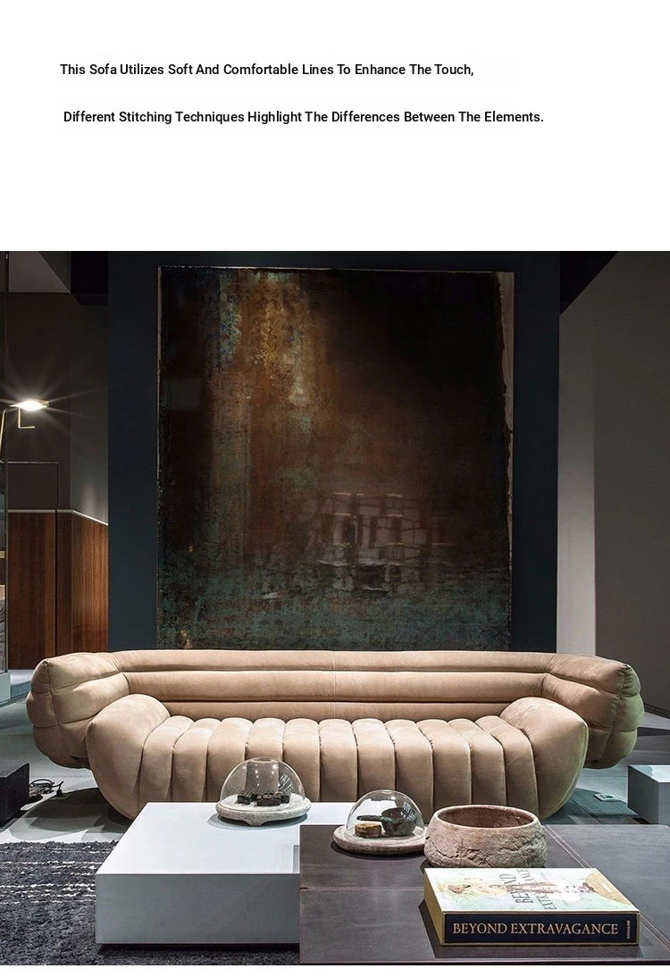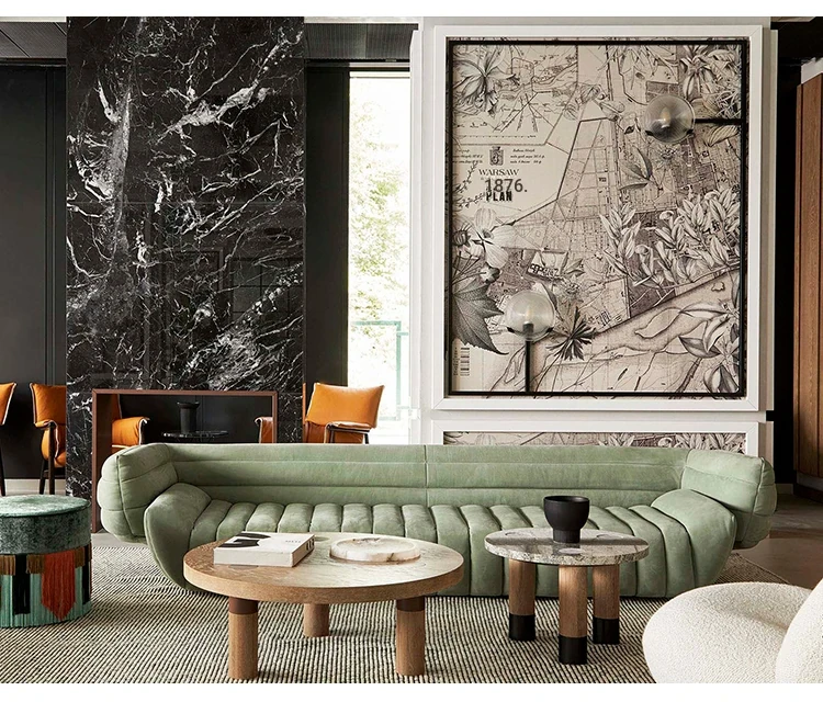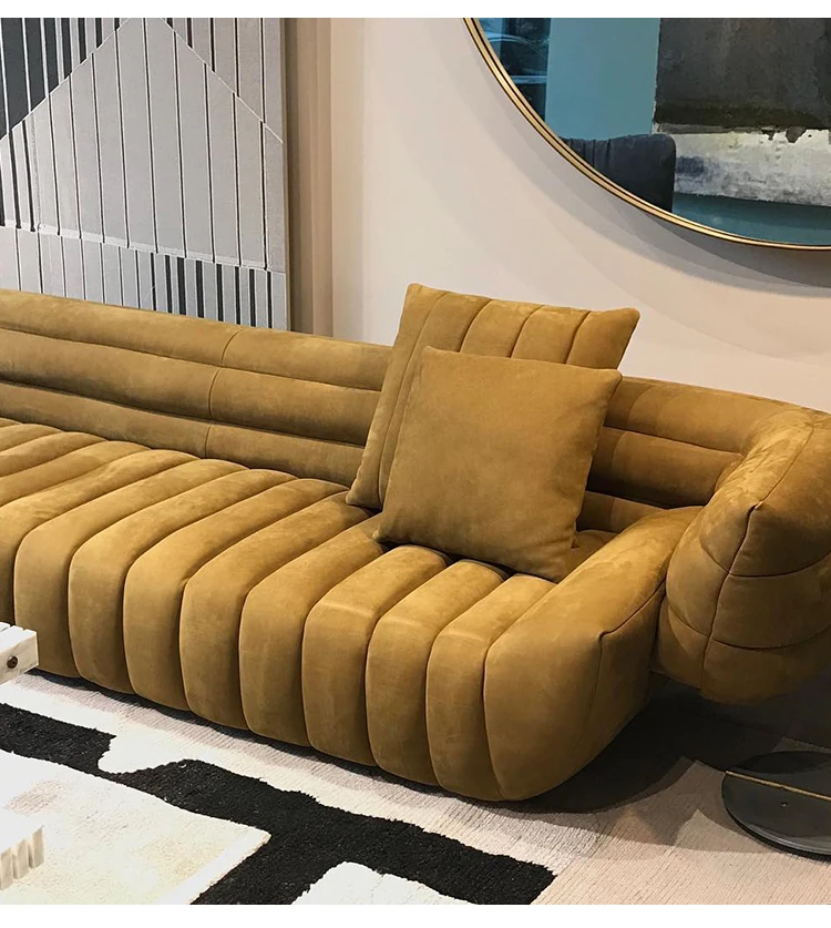 Fuwos Italian Luxury Large Villa Clubhouse - Imported Top-Grain Suede Leather Tactile Sofa for Living Room