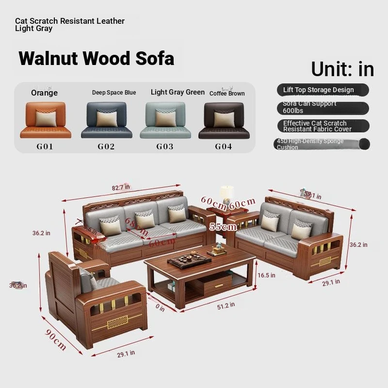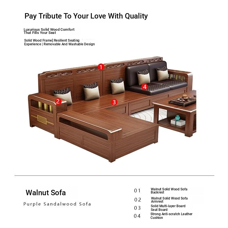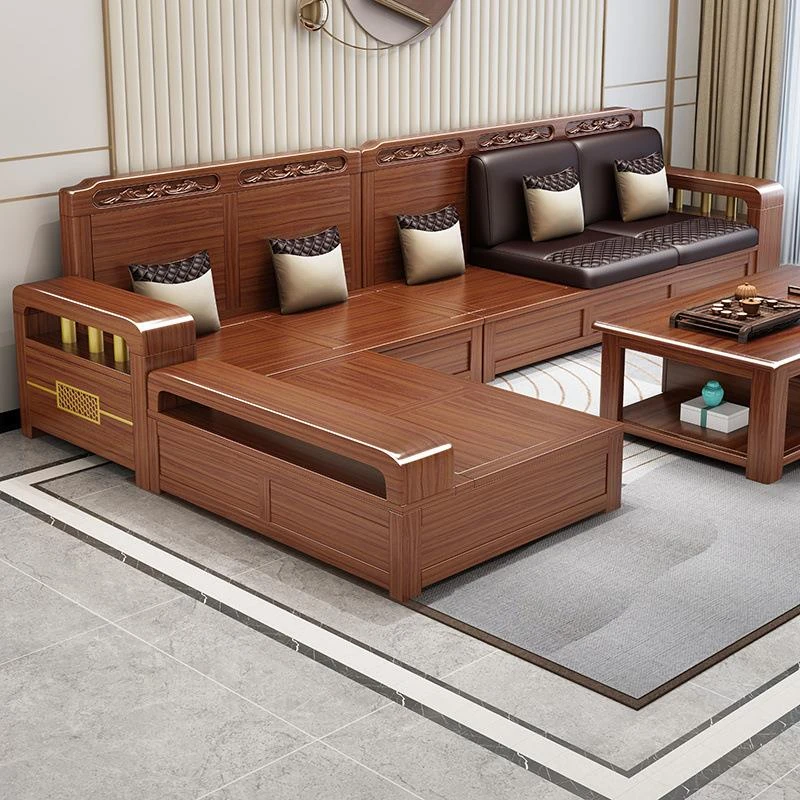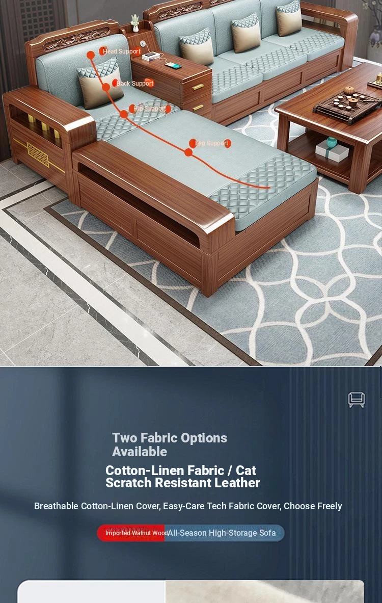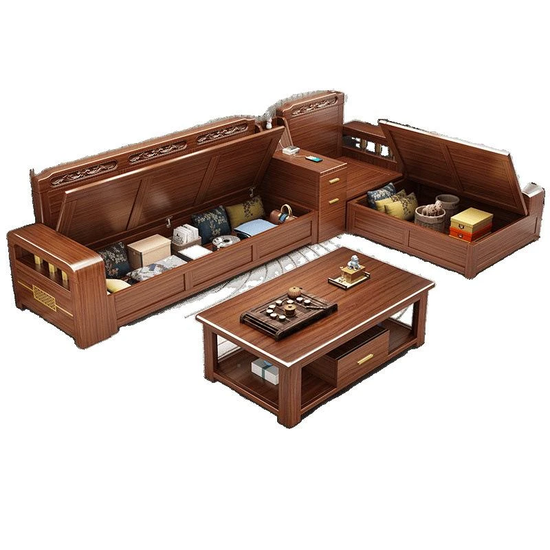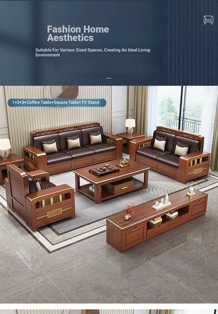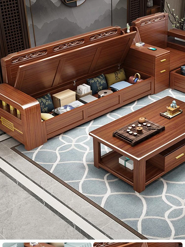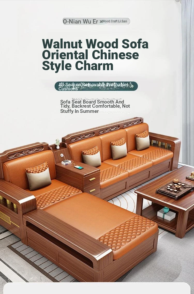 German Chinese-Style Solid Walnut Sofa Set - Versatile for Year-Round Use, Ideal for Small Spaces, with Stylish Storage Solutions for Your Living Room.